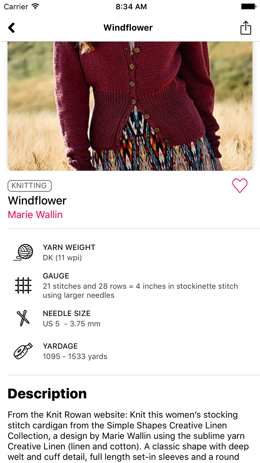 * Feed of your friends’ activity in a easy scrollable format: check out their most recent favorites, queued projects, project photos, and stash. Add to your own favorites and post comments easily without ever needing to touch your computer.