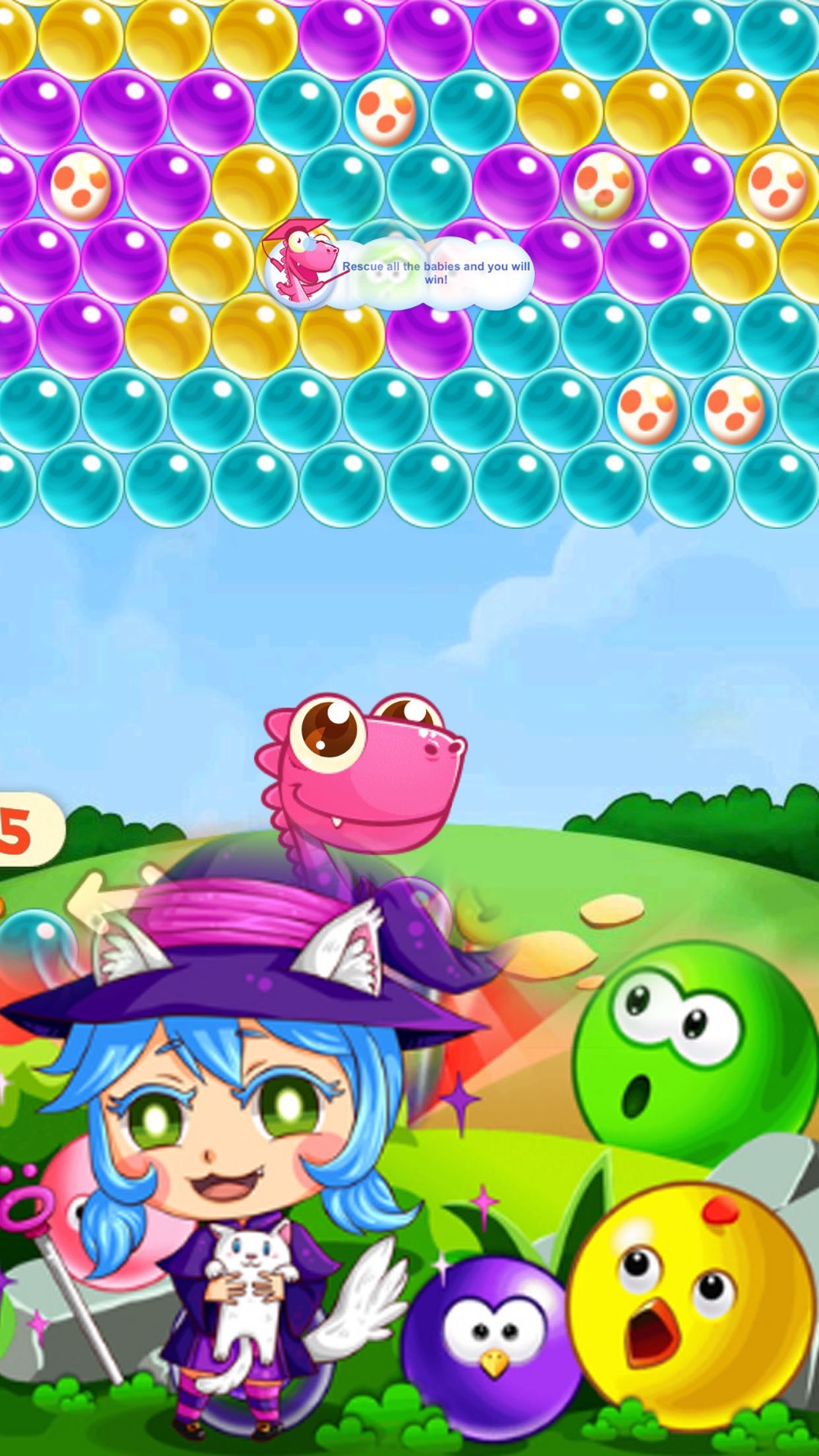 Aim and shoot bubbles as many same color bubbles together as you can!