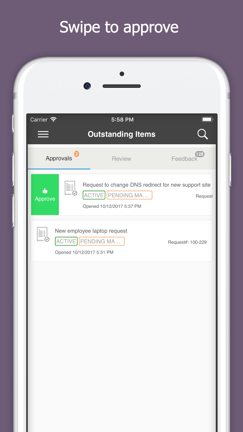 Using the Service Desk mobile app, users can obtain Service catalog, create a ticket and approve the ticket all from a mobile device.