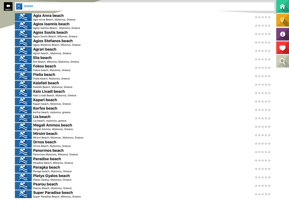 Use the application to see all of Mykonos island's hotels, businesses, villages, bars, restaurants jewellery stores, food markets or anything else you might need. Each entry can contain multiple images, contact details, the menu or brochure and of course the exact GPS point for easy access and navigation.