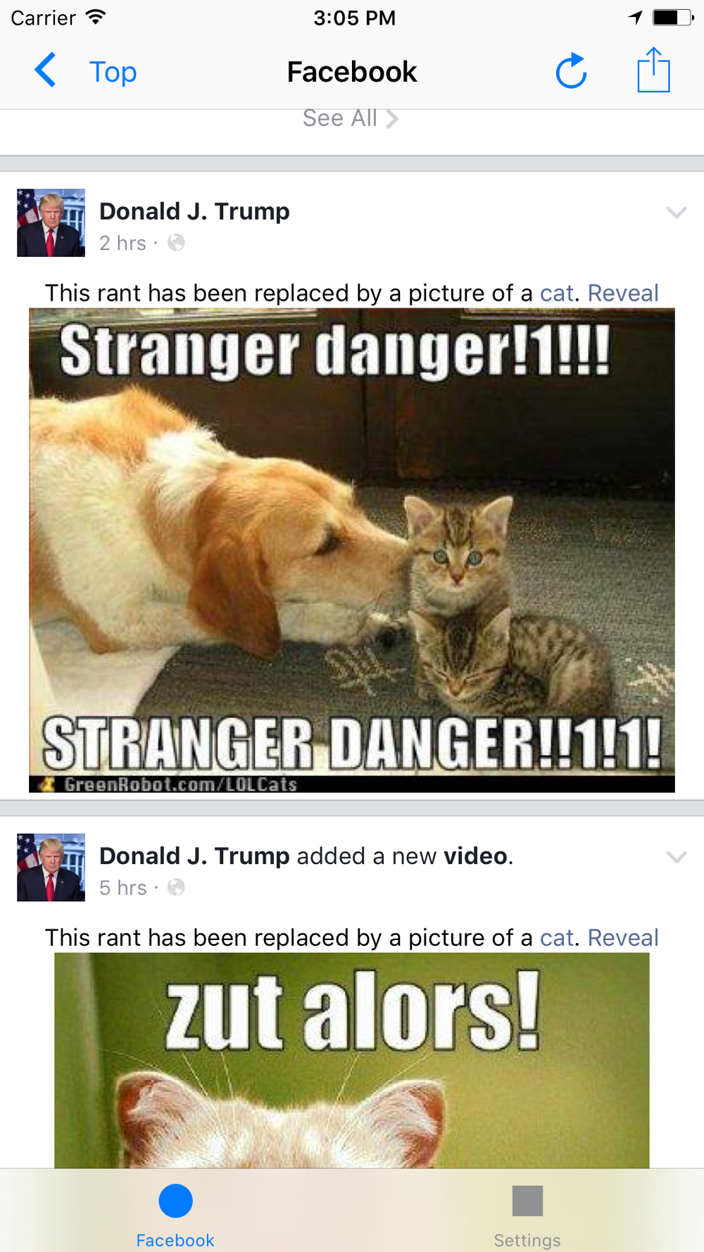 Solution: Install FaceRant for free and replace rants with pictures of cats! And FaceRant also allows you to "reveal" the rant if you change your mind.