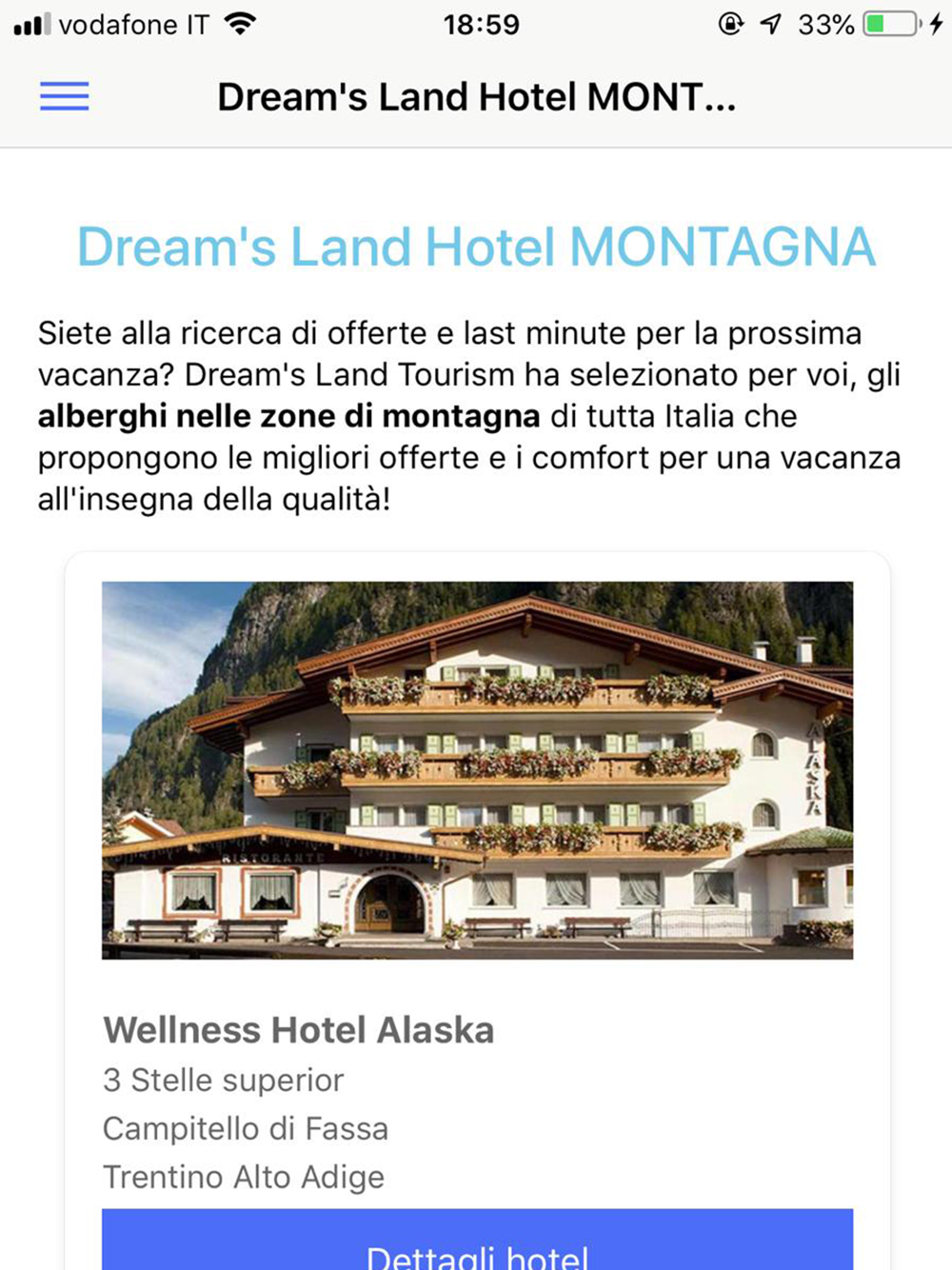 Dream's Land Tourism è una app dedicata alla qualità e al benessere in vacanza! All'interno della nostra app e del nostro portale troverete tutte le offerte, i pacchetti, le promozioni e i last minute dedicati alle vostre vacanze al mare o in montagna.