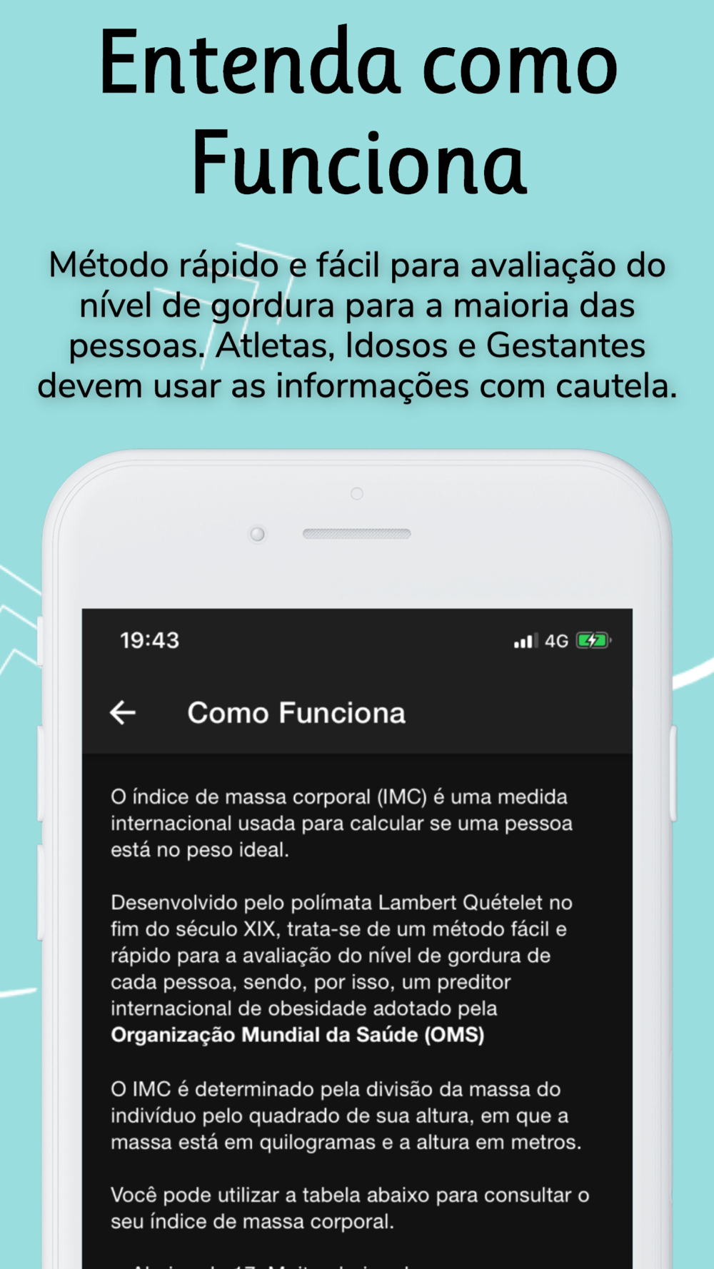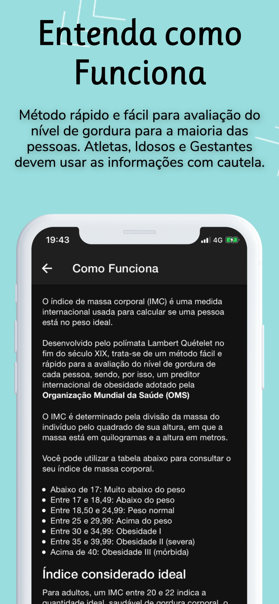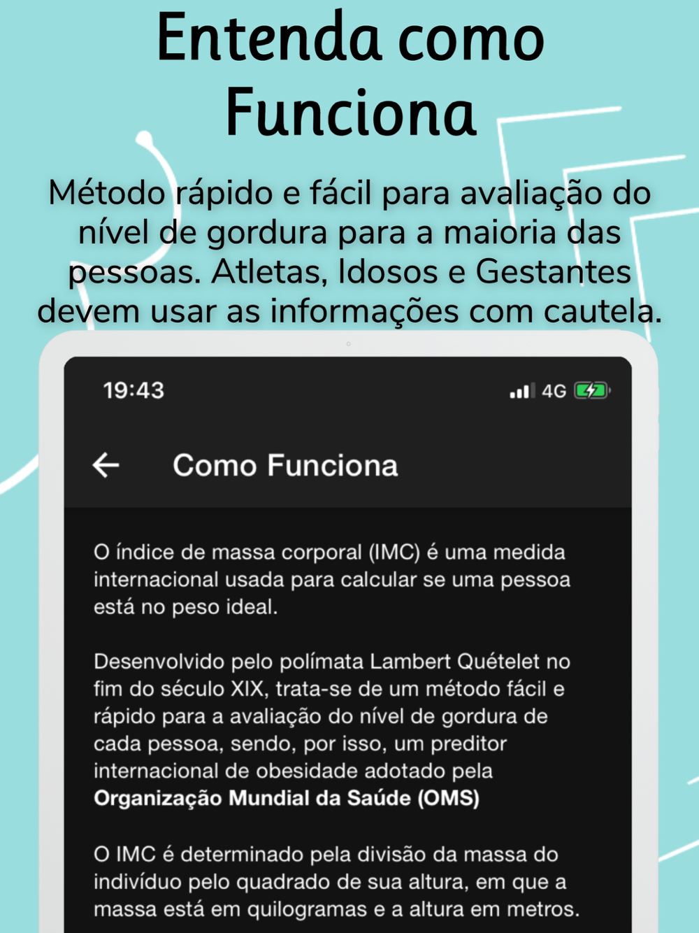 O Peso Ideal vai calcular o seu Índice de Massa Corporal (IMC) e permitirá que você saiba se você está abaixo, no peso ou obeso.