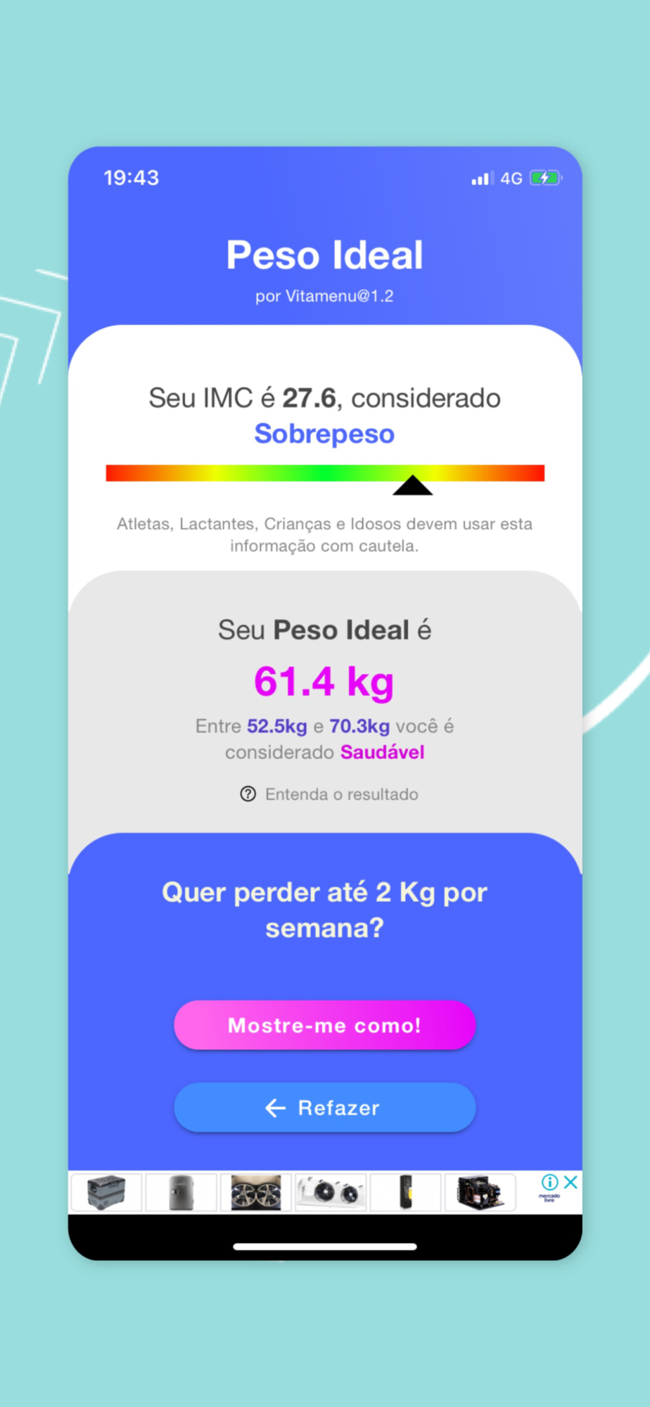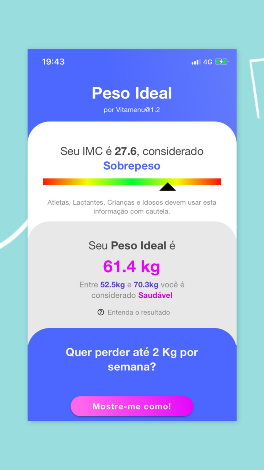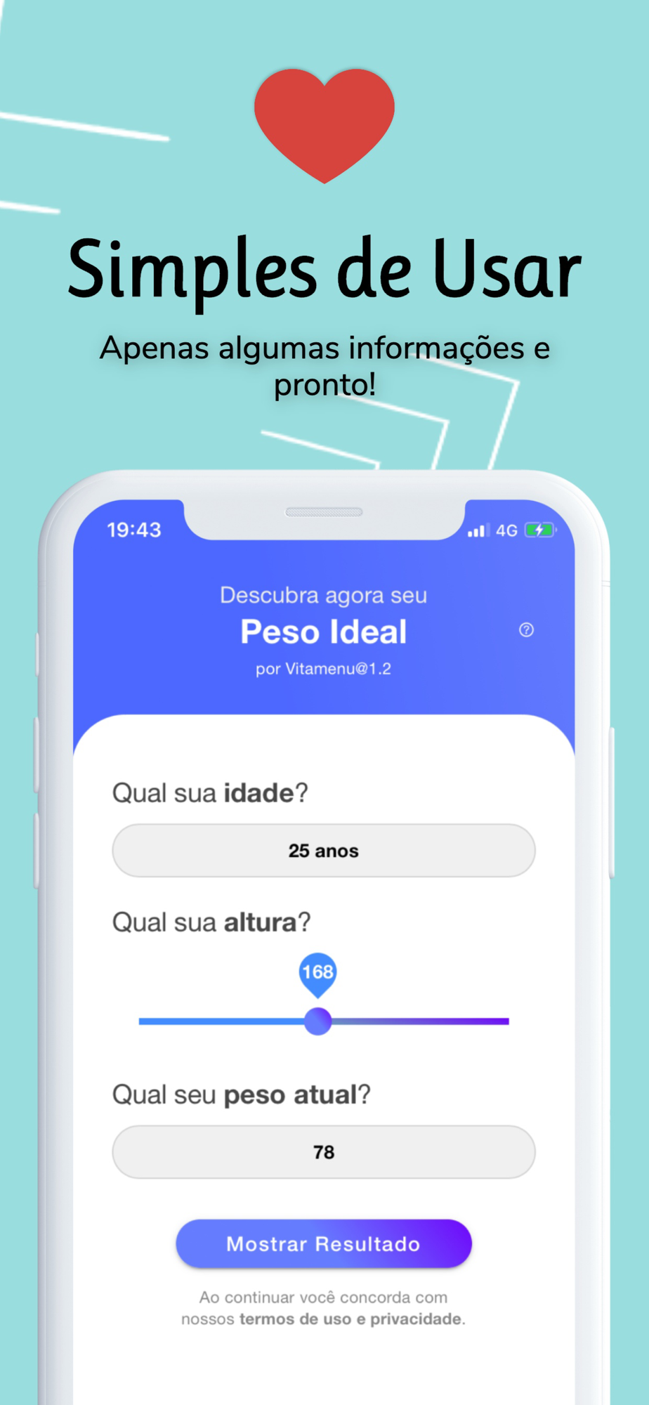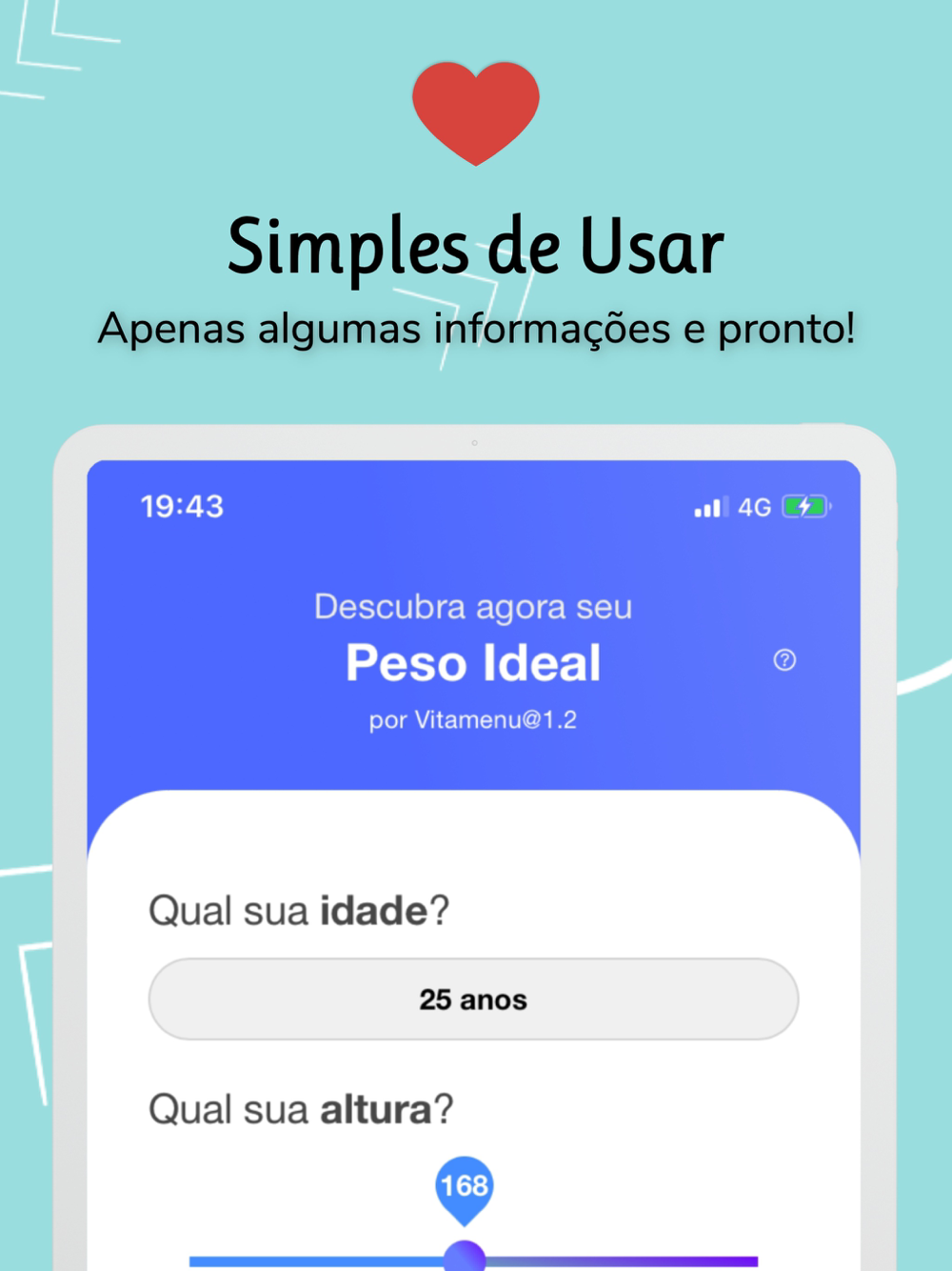 É muito fácil, basta preencher seu sexo, idade, altura e peso atual para saber.