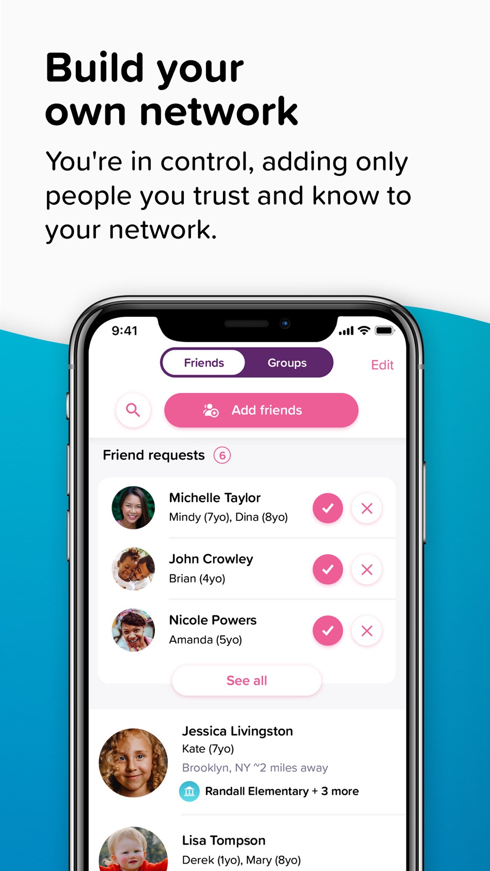 1. Build your own network: You're in control, adding only people you trust and know to your network, and deciding which care requests to accept.