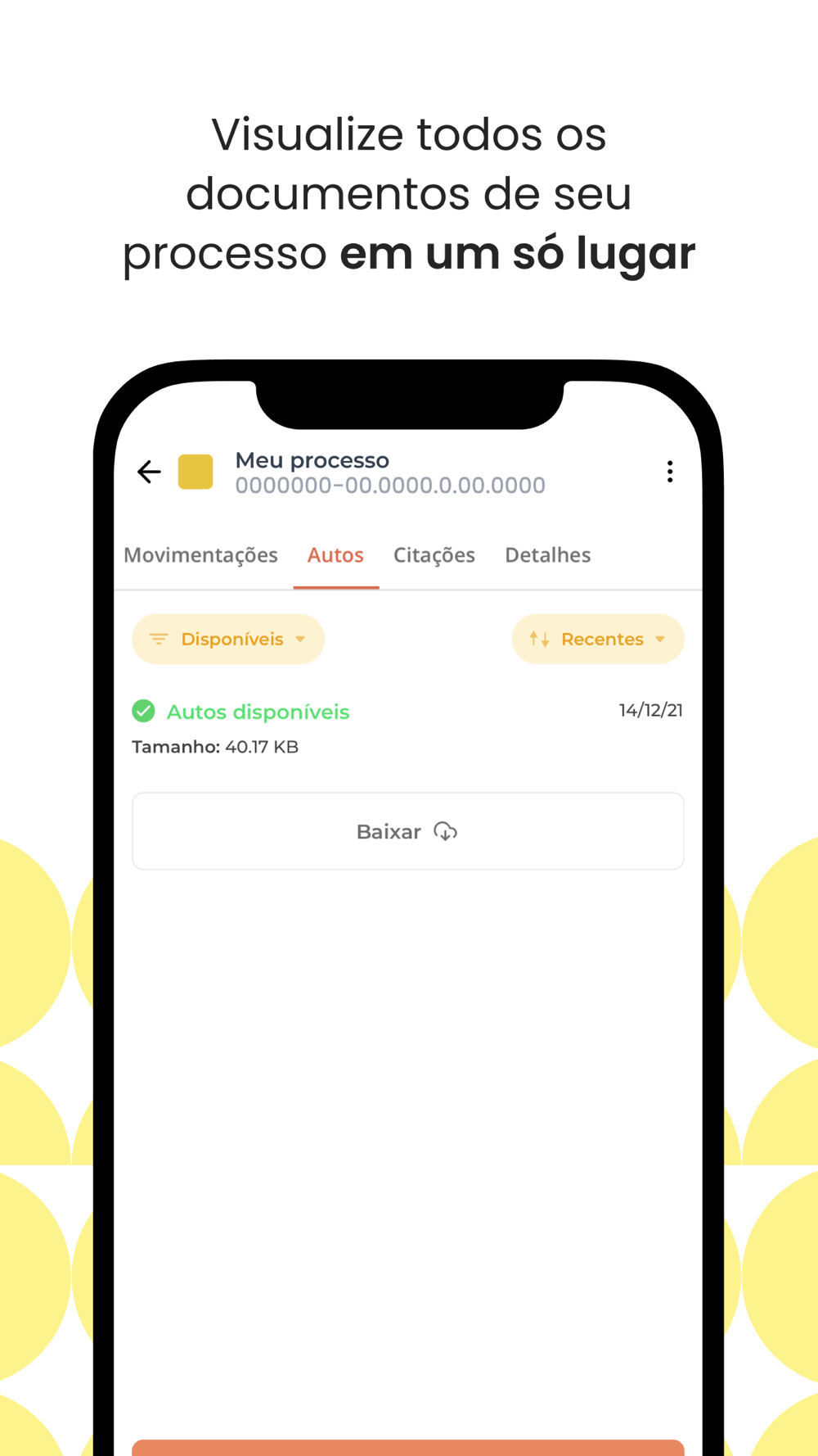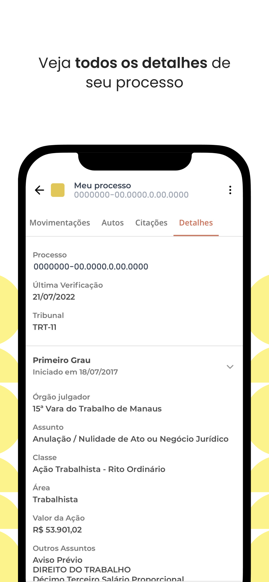 • Além da busca, você também pode fazer o acompanhamento de publicações futuras, basta cadastrar um termo de seu interesse ou até mesmo o número de um processo, que faremos o acompanhamento dele e te alertaremos sempre que encontrarmos alguma novidade do seu interesse.