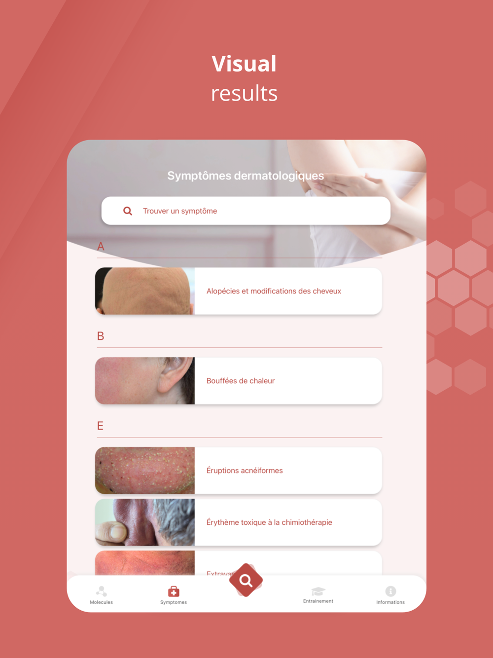The Side Onco Skin app has been designed to support and train healthcare professionals in treating and advising patients suffering from dermatological symptoms related to chemotherapy, targeted therapy, immunotherapy or radiotherapy.