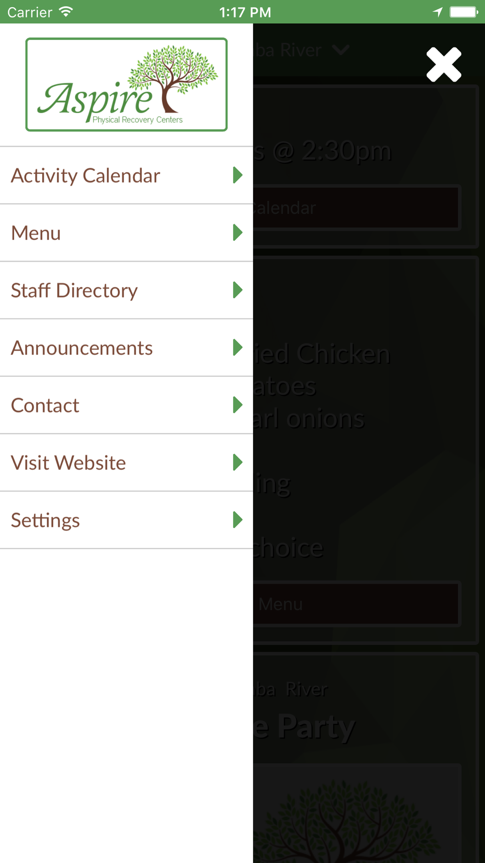 This app is for guests of the Aspire Physical Recovery Centers, allowing them to keep in touch with what's going on at their rehabilitation community.