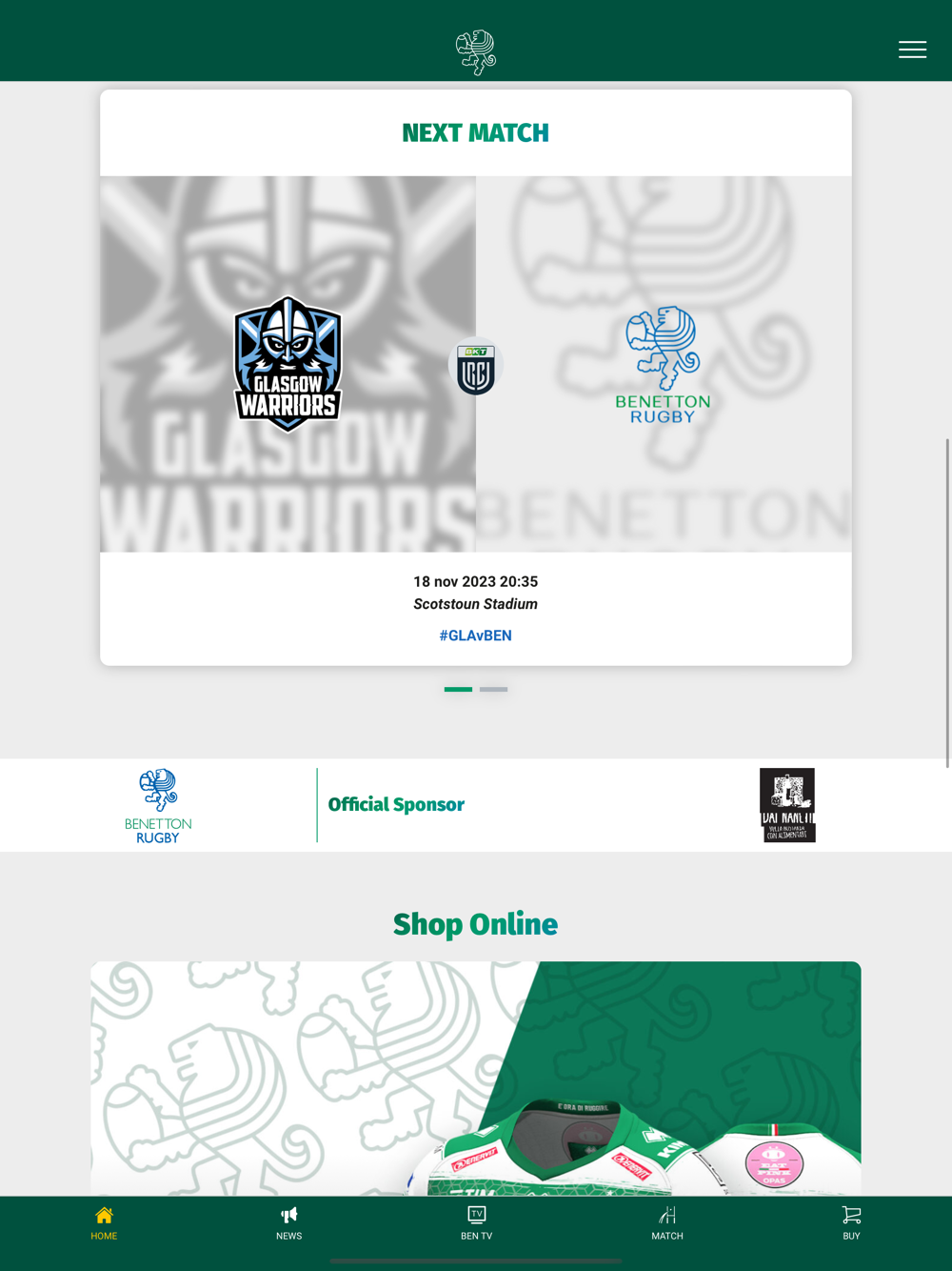 Grazie per aver scelto di usare Benetton Rugby Official App!