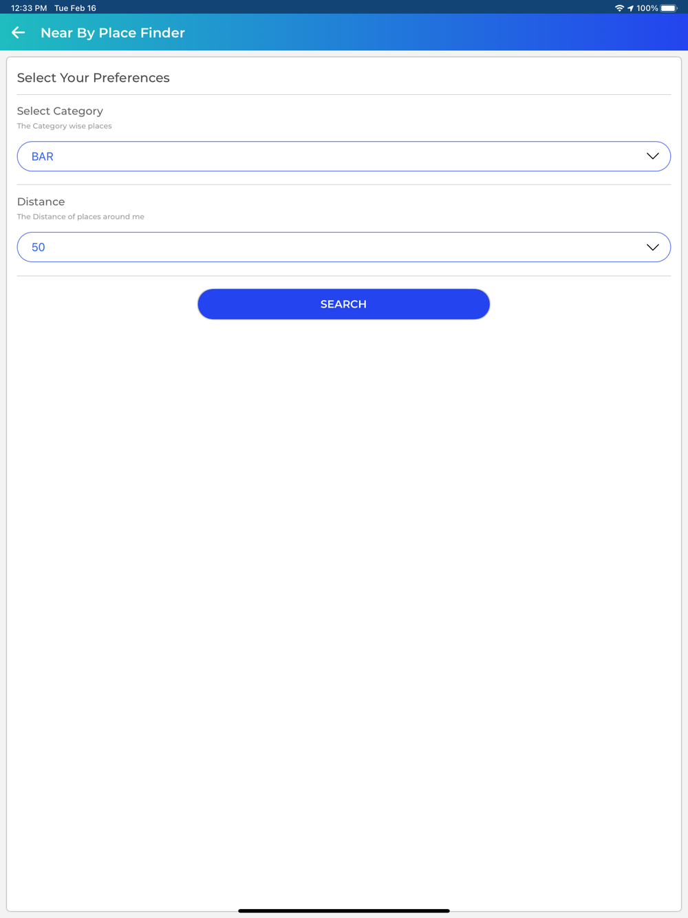 Place Finder application is display easily places with details. The purpose of this application is just simplified your Place (Location). User can find easily details of location. Also user can see place details like, address, phone, website, youtube video, map(direction), distance and etc. User can filter category wise nearest places with specific distance limit. Login user can make rating of place and all user can see place rate with review. Application display Latest, All Places, Favourites and filterable places display separately. User can also see it's profile with update option available.