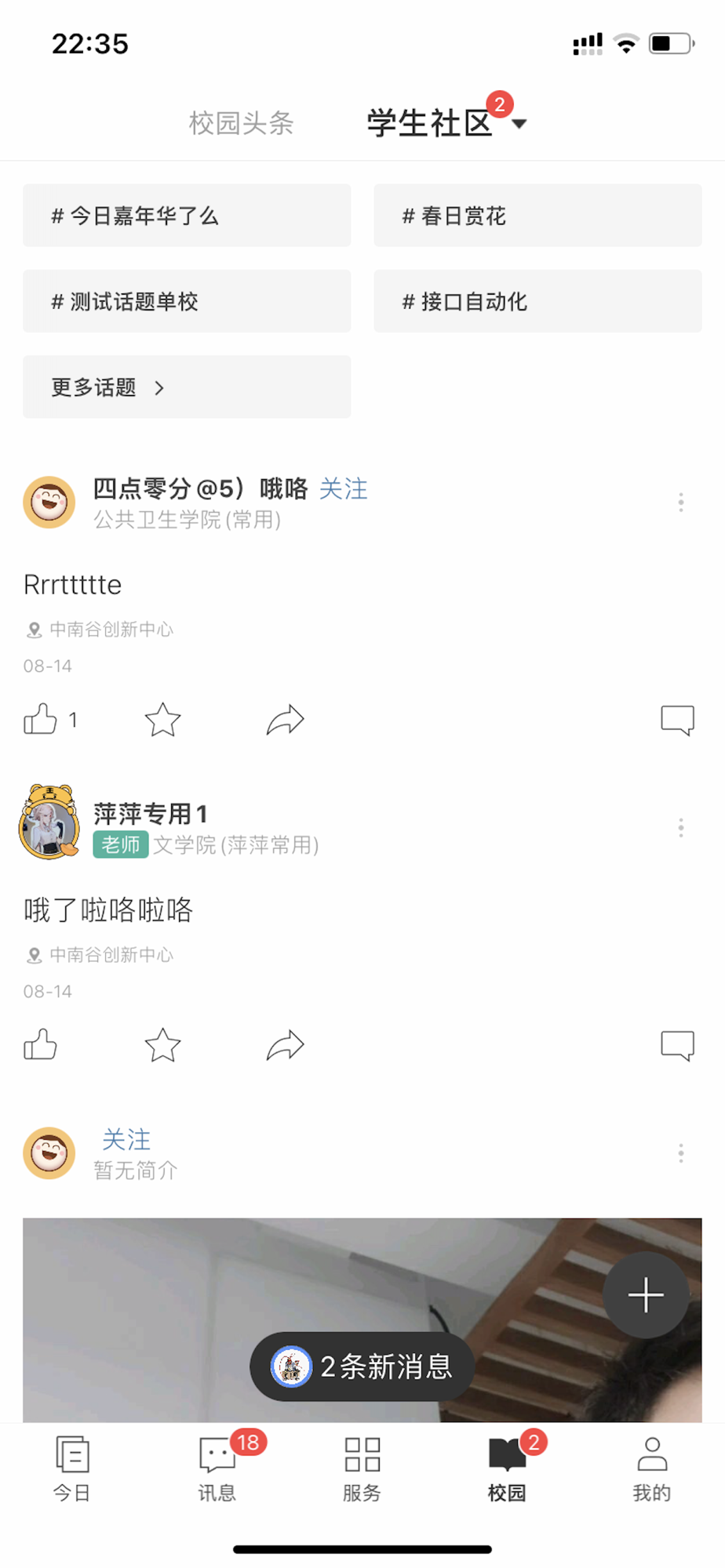 组织矩阵:自动推荐校园号,校园号、校园号内容有序聚合,形成本校专属的校园文化及组织矩阵;