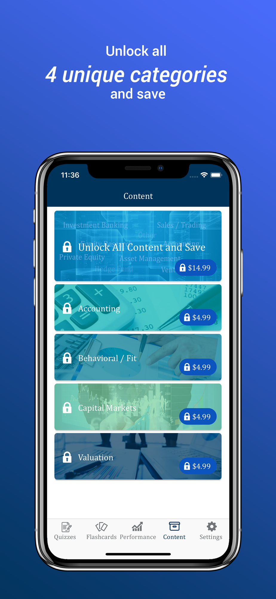 Master the Wall Street interview questions you will likely be asked via this intuitive finance study tool. We provide 600+ behavioral and technical questions with our flash card-based study system. Prove that you know the answers by completing our rigorous quizzes. Track your performance over time and ace your next finance interview.