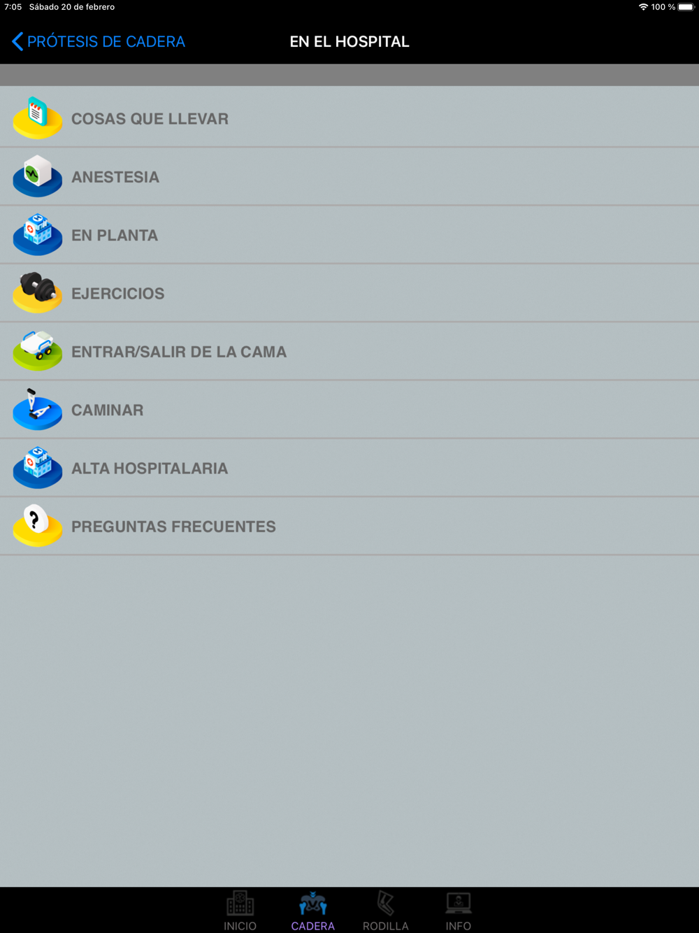 Toda la información que se proporciona en la aplicación, ha sido exhaustivamente comprobada y contrastada por especialistas en Traumatología y Cirugía Ortopédica de la Unidad de Cadera y de Rodilla del Hospital de Galdakao (Vizcaya).