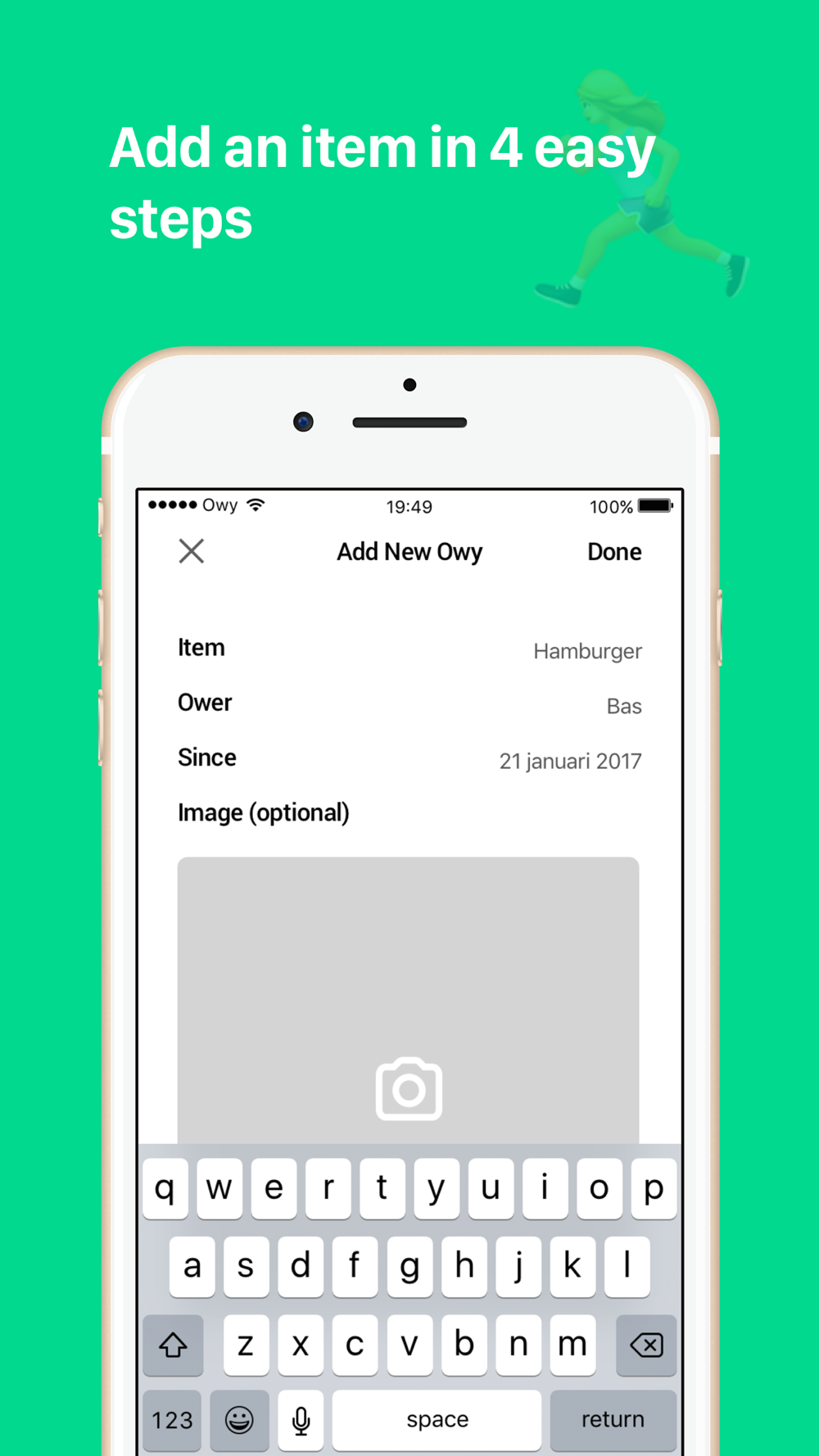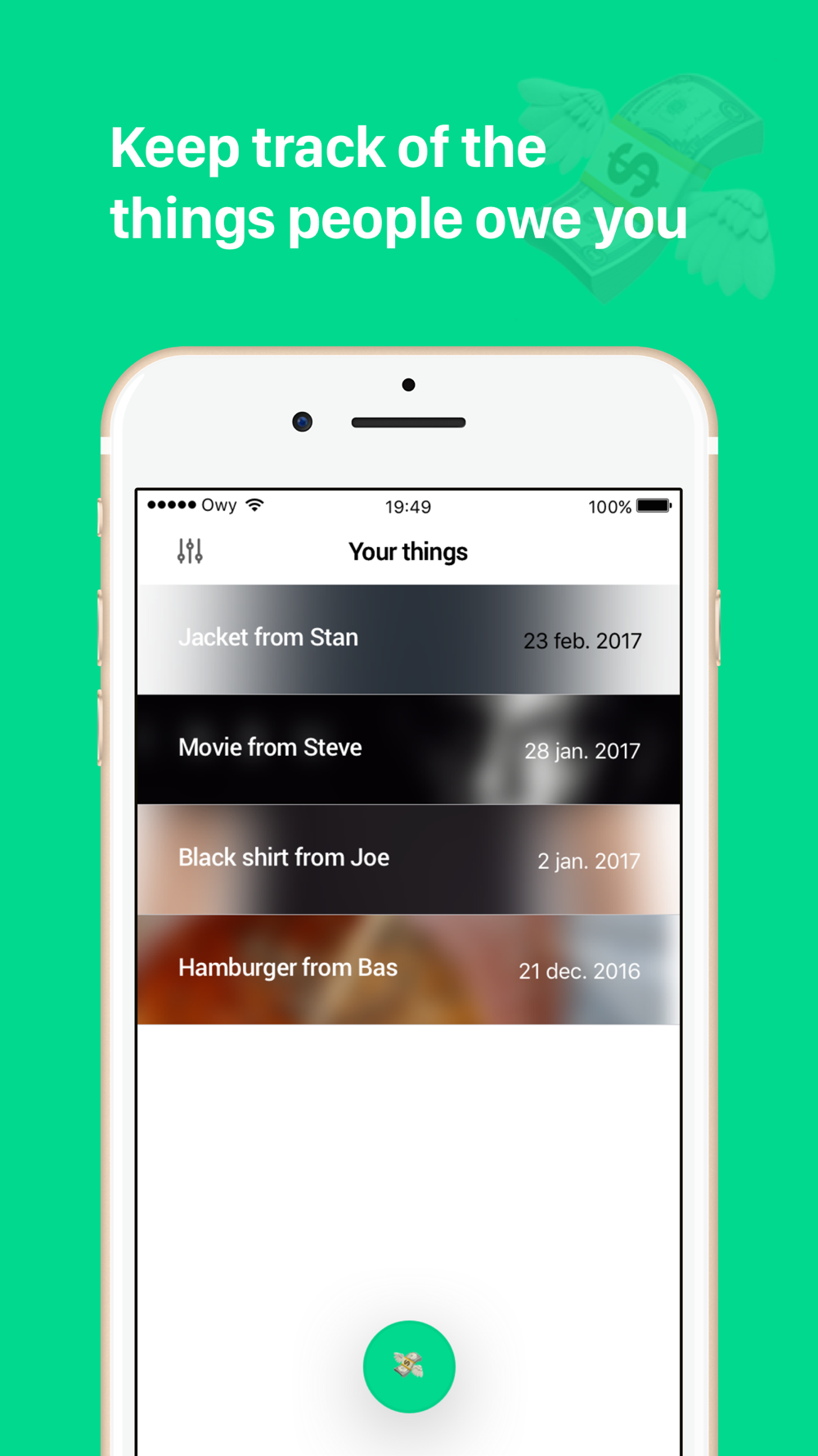 Owy is an easy way to keep track of the things your friends owe you. Add an item in under 30 seconds and you will get a reminder after one week. Send a message in 1 tap to get your item back.