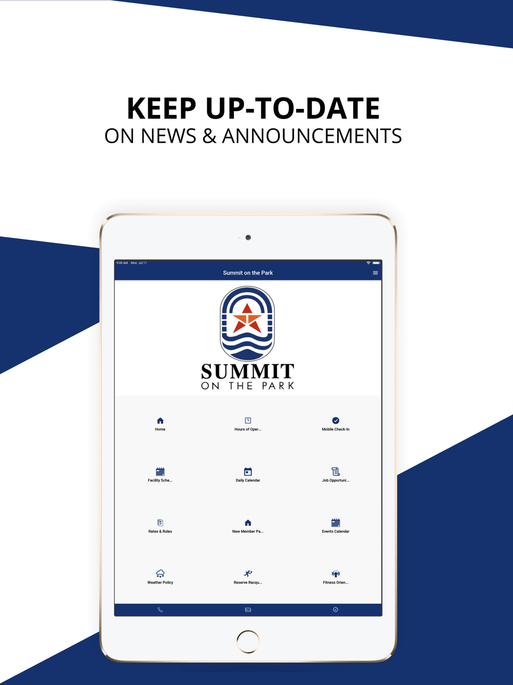 Stay connected to your members through Summit on the Park's customized mobile app built just for you.