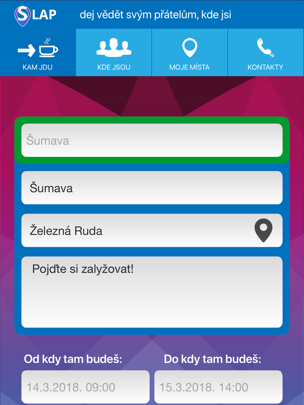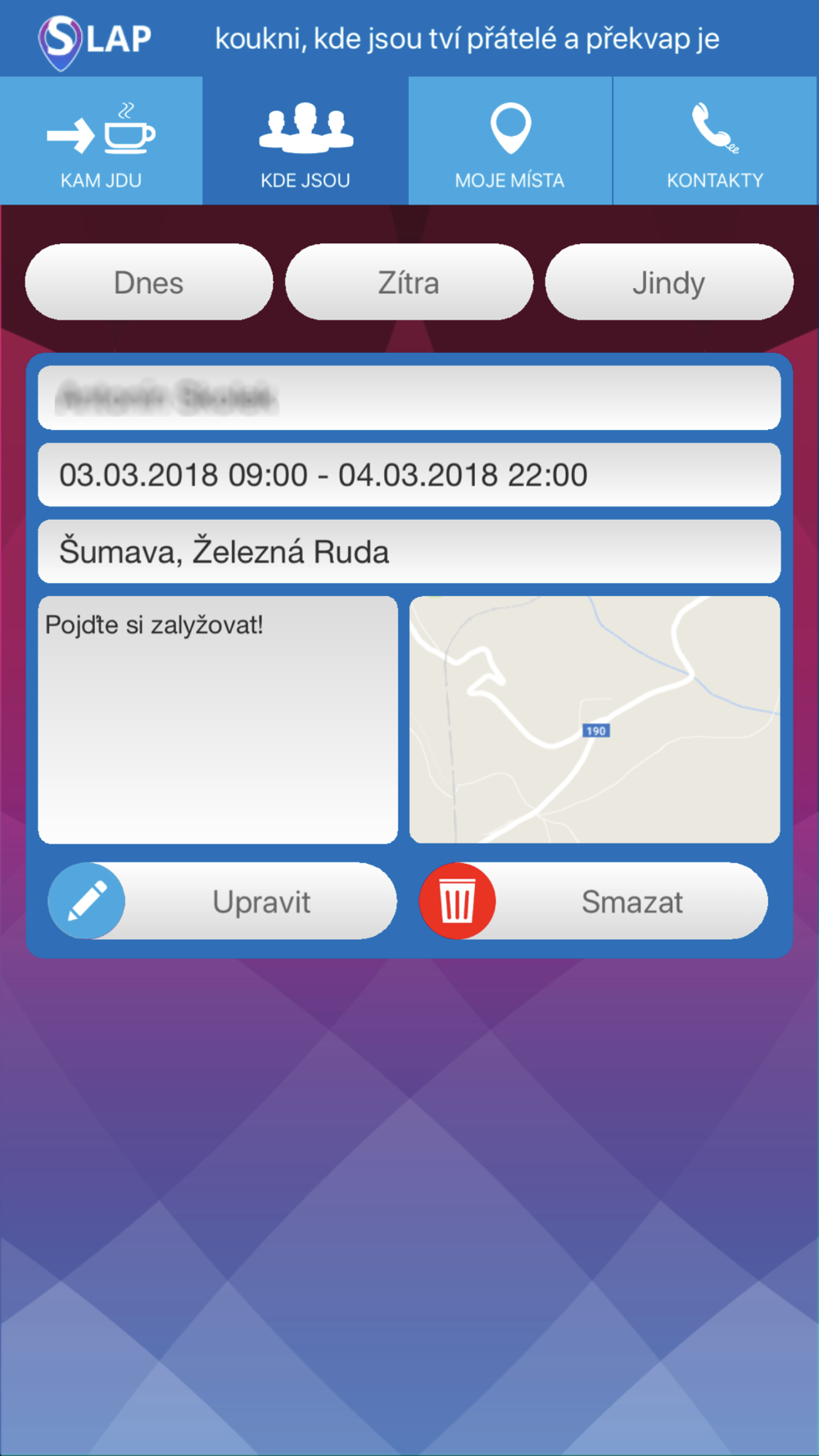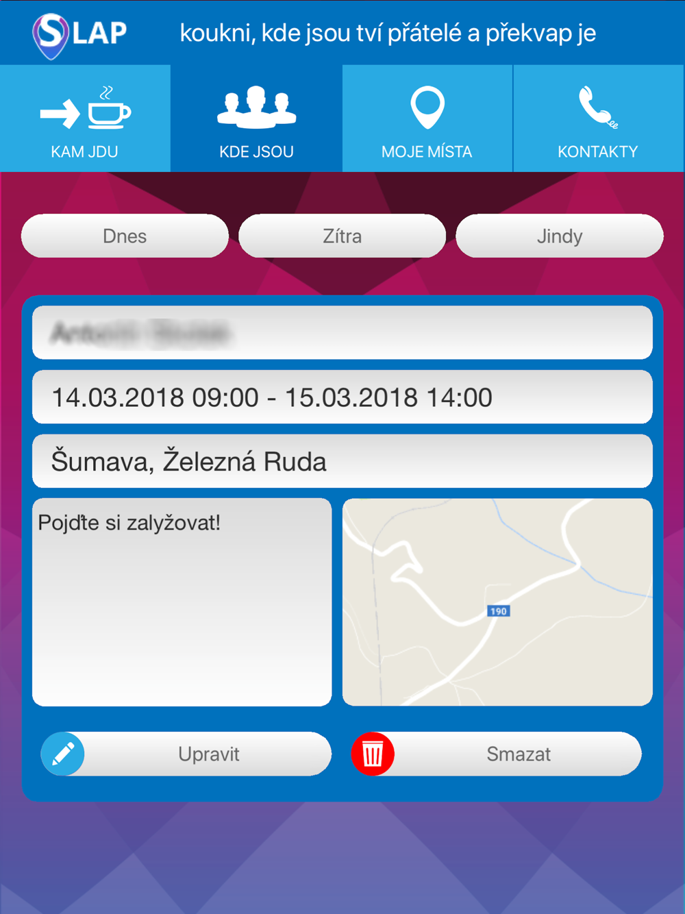 Slap také umožní diskrétně pozvat vybrané přátele na akci nebo místo, kde právě jsi nebo kam se chystáš.