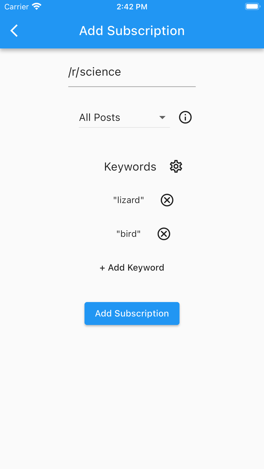 - Filter notification subscriptions by keyword. For example, if you want to receive notifications for /r/science, but only if the title contains 'bird' or 'reptile', you can!