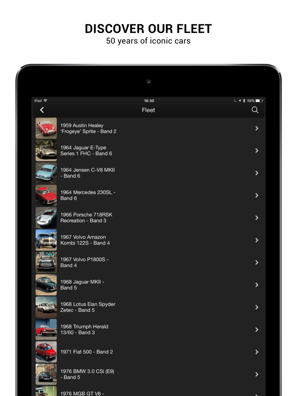 The Mobile App offers Classic Car Club experience on the go for its members and guest users: kept up to date with our latest fleet, lifestyle content and events and gain exclusive promotions and experiences.