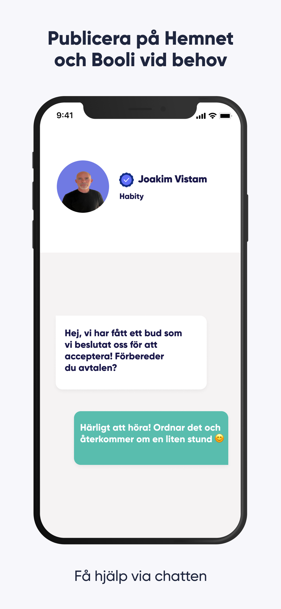 • Kommunicera med andra bostäder och anslutna mäklare direkt i appen