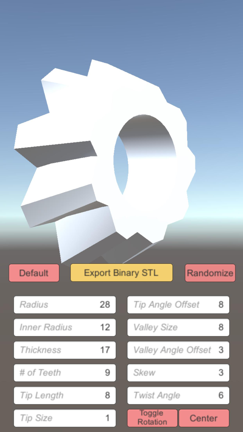 - Gear Exports (.STL file) are immediately available for use by any 3D Slicer Program for all 3D Printers