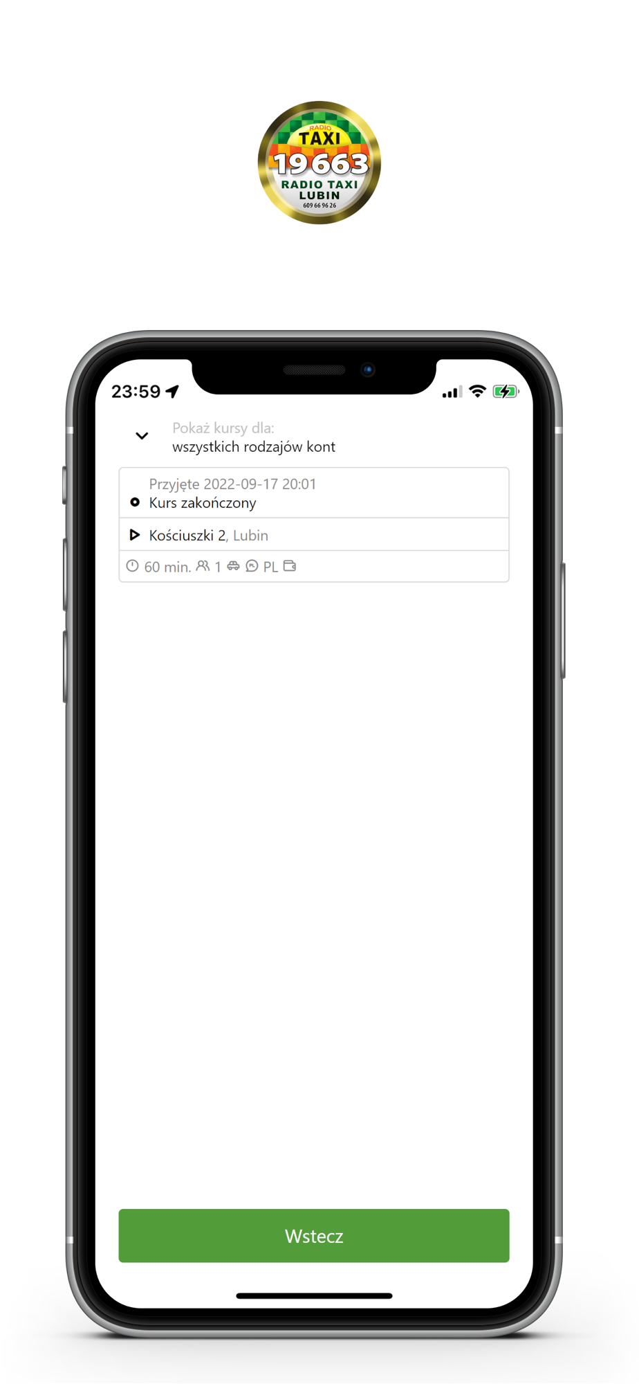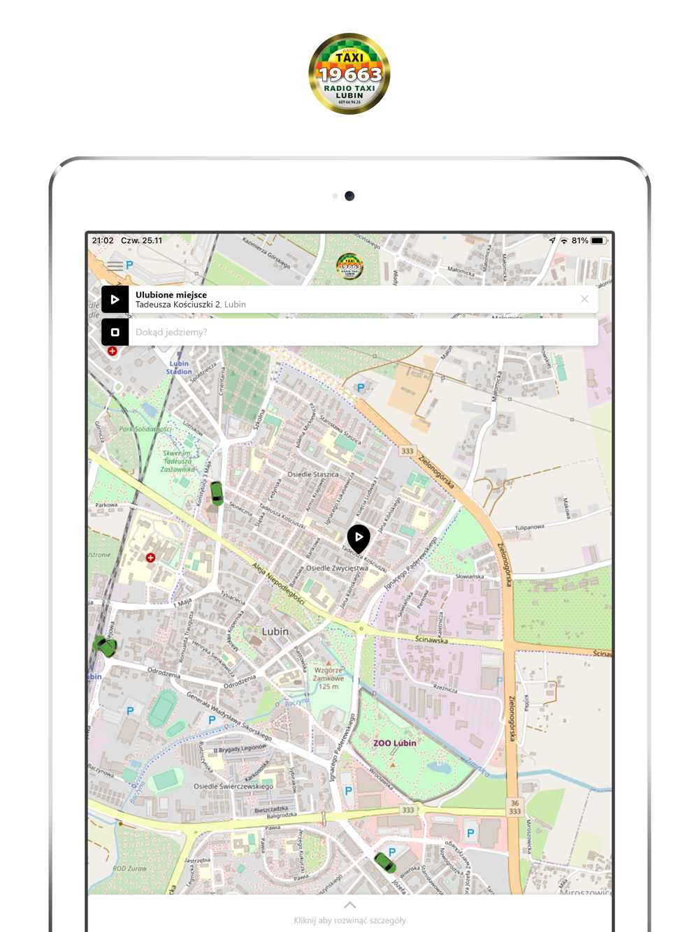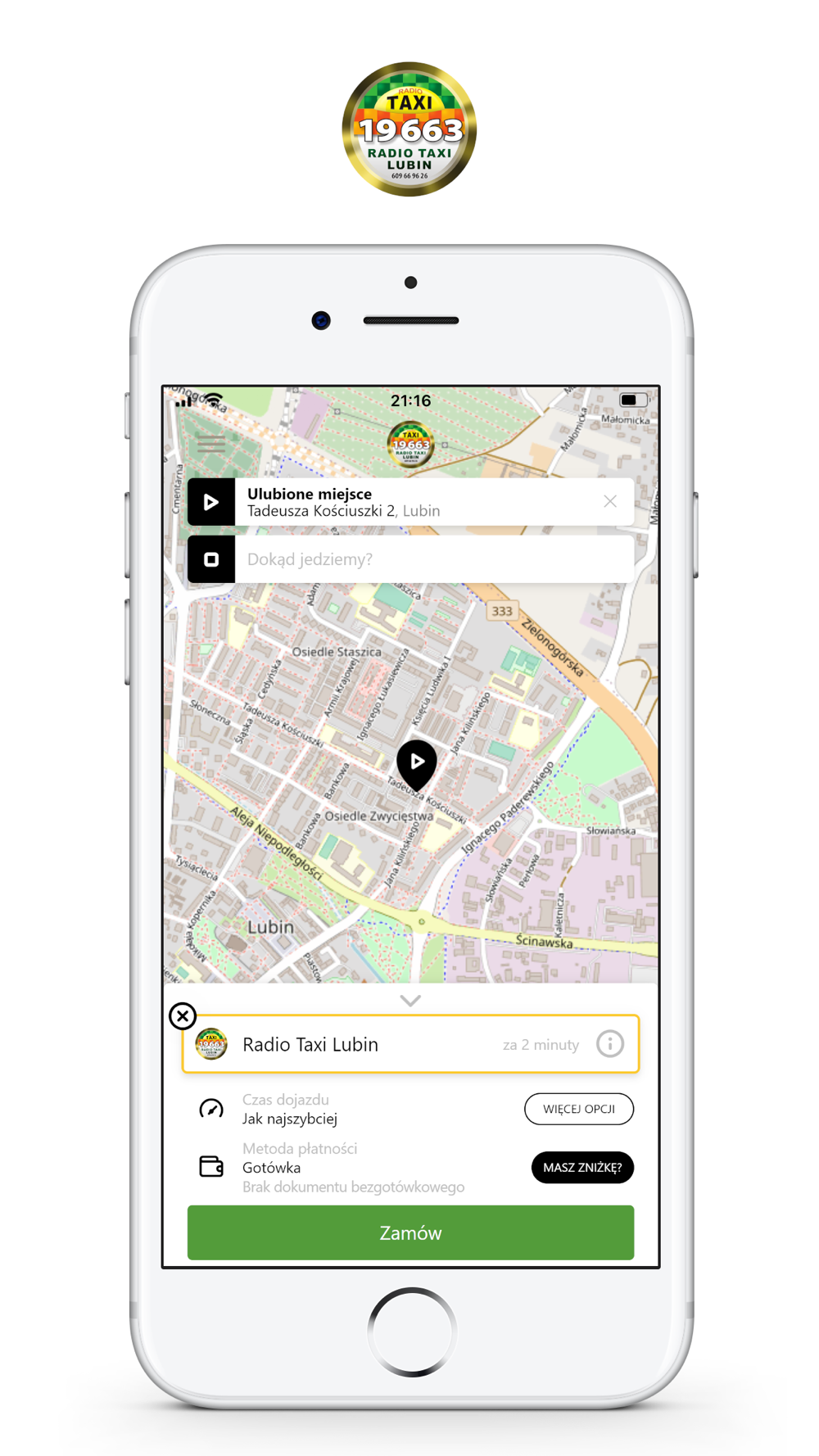 Zapraszamy do zamawiania taksówki w Aplikacji Radio Taxi Lubin, poprzez wpisanie adresu lub na podstawie współrzędnych GPS, bez konieczności oczekiwania na połączenie z dyspozytorką. W zamówieniu możesz określić swoje wymagania dotyczące taksówki. Czekając na taksówkę możesz ją obserwować w czasie rzeczywistym na mapie lub czekać na SMS informującego, że taksówka już oczekuje pod wskazanym adresem. Aktualny czas dojazdu to około 2 minut a w wyjątkowych sytuacjach do 5 minut. W naszych taksówkach nic nie ginie. Wystarczy tylko być pewnym, że korzystasz z Radio Taxi.