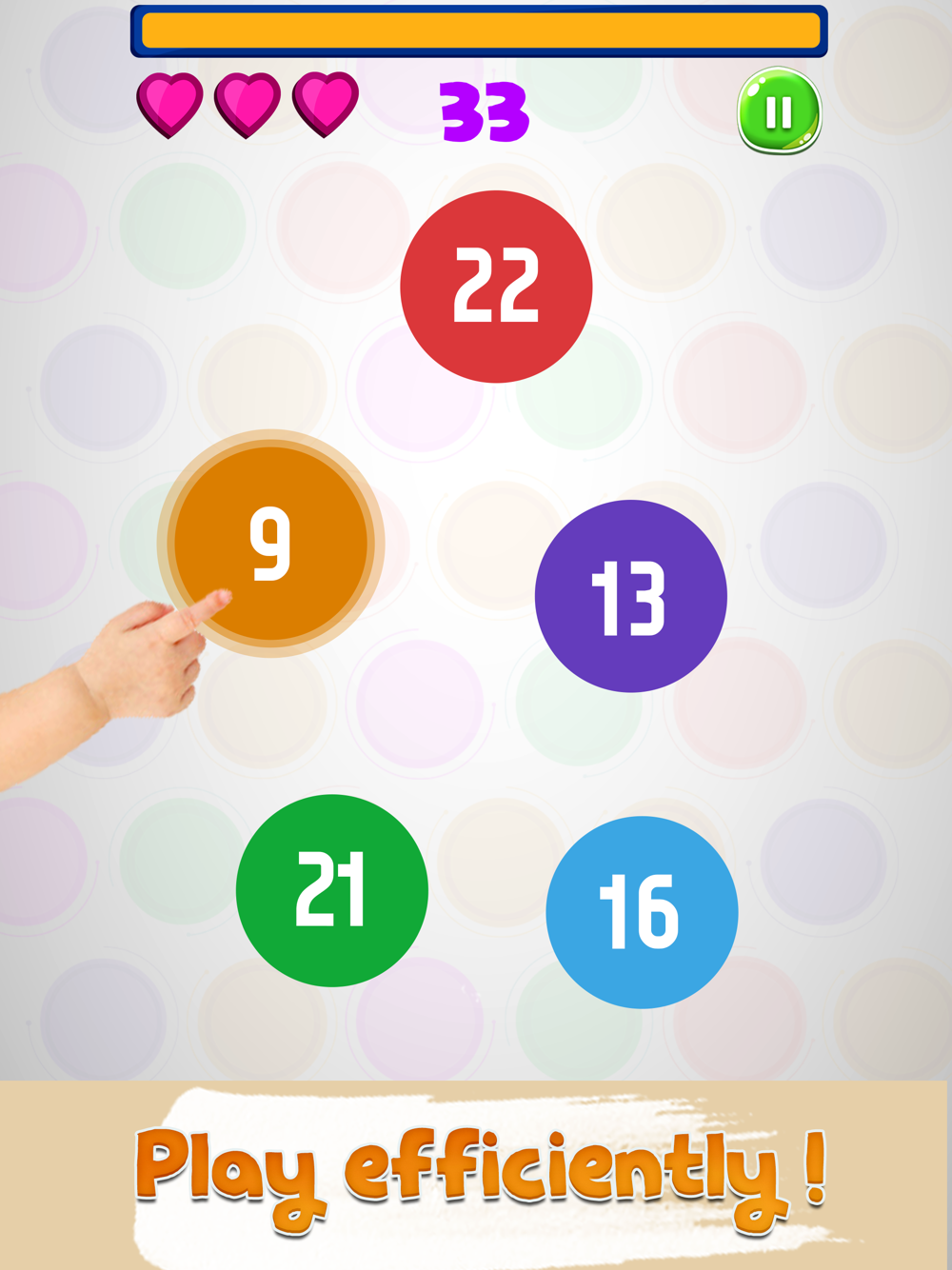 The game includes 3 modes. In first mode you have to tap the numbers ascending order in the given time. In second mode there are two levels, one is infinite and other is time trial.In the given time you have to tap the numbers from 1 to 100 in ascending order. In third mode you have to judge the number whats next.This a complete educational game for your kids.