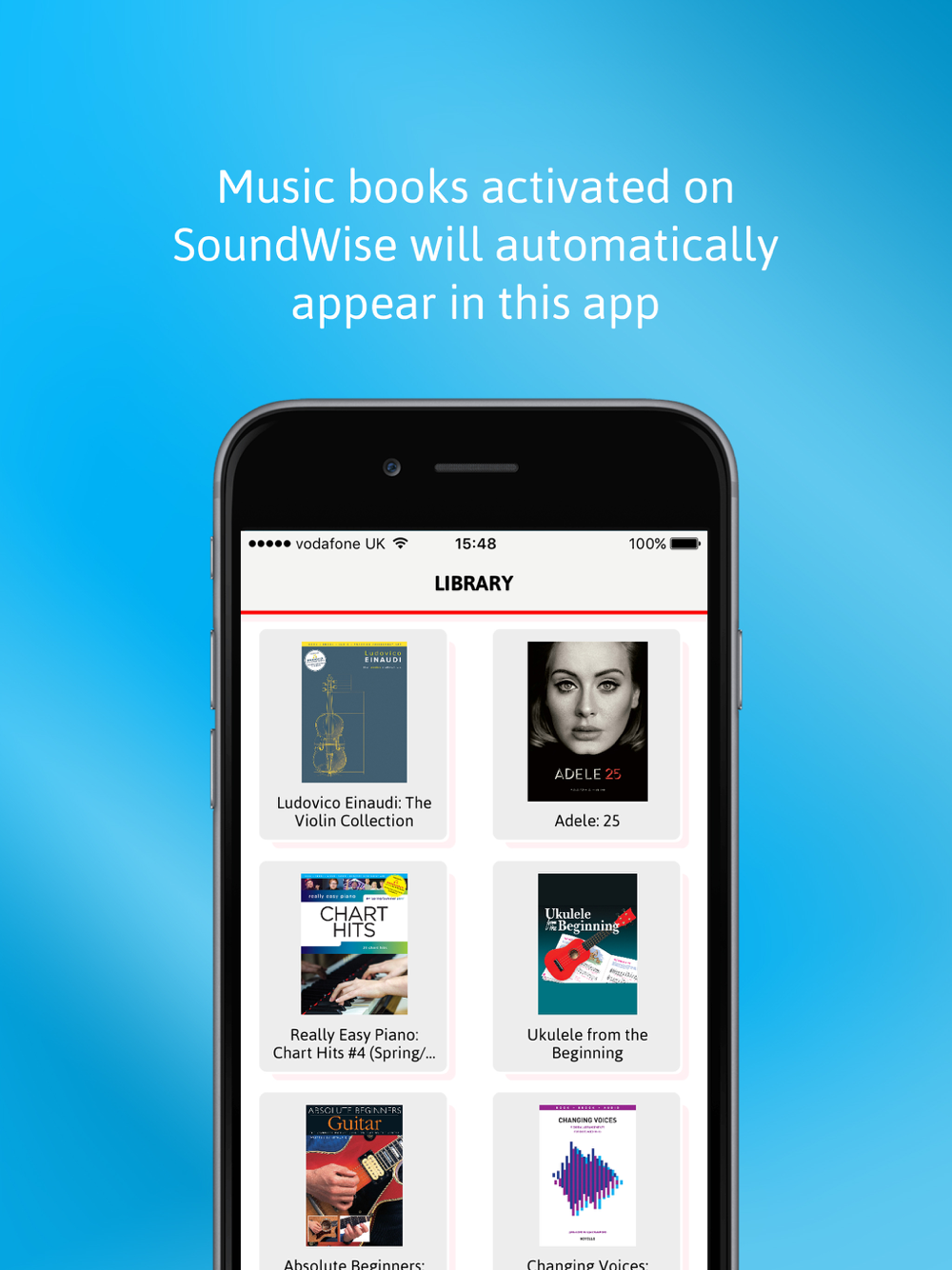 Turn your iPhone or iPad into an interactive music book and play the music you love, when you want, where you want. Music books you have activated on SoundWise will automatically appear in your App.
