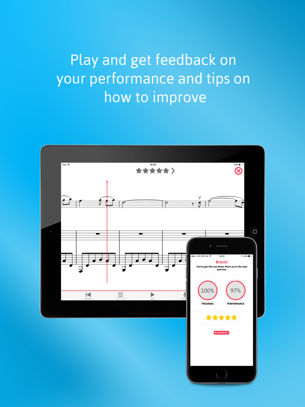 Encourage your students to practice between lessons and challenge them to get 5 stars on every exercise. Our cutting-edge feedback technology is engaging and fun, allowing students to get more from their practice.