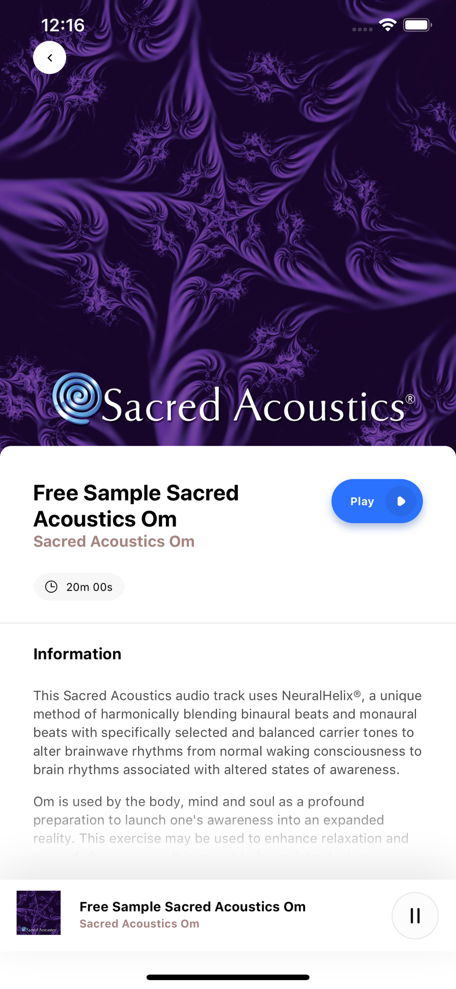 The founders of Sacred Acoustics, innovators in the field of brainwave entrainment, were initially inspired through a shared passion for exploring expanded states of consciousness. By blending precise harmonic layering with its proprietary NeuralHelixTM technology, our recordings deliver modulated brainwave patterns to support a multitude of brainwave states, including states of profound relaxation.