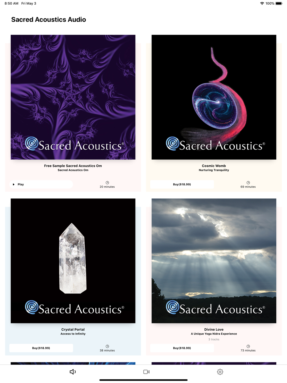 Sacred Acoustics recordings are used to accomplish a wide range of goals. While your awareness is in an expansive state, it becomes easier to let go of mind chatter, access intuition, manifest healing or find creative inspiration and spiritual guidance. Or, simply get a good night's sleep!