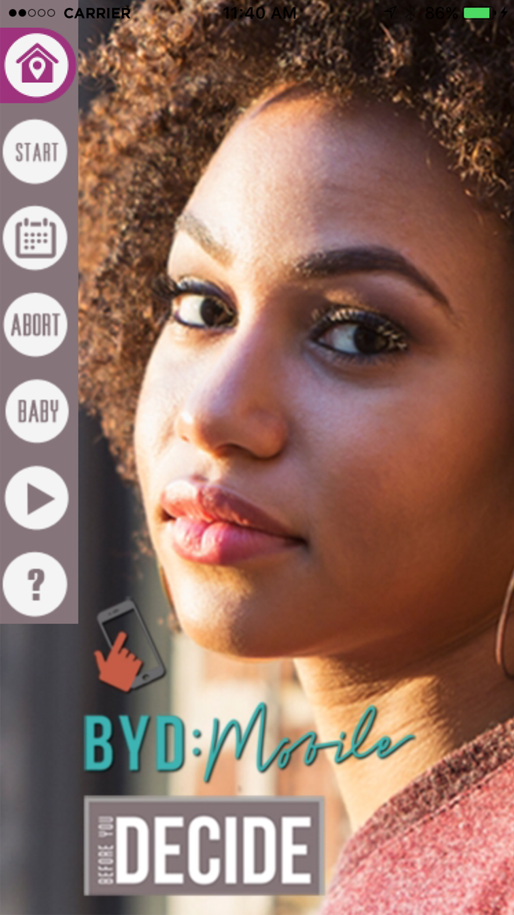 BYD: Mobile (Before You Decide) helps make a fully informed decision about your pregnancy. Explore all your options -- single parenting, adoption, marriage, co-parenting -- through videos, Q&A, images, and interactive exercises. This app will give you the information you need to empower you in your decision-making process.