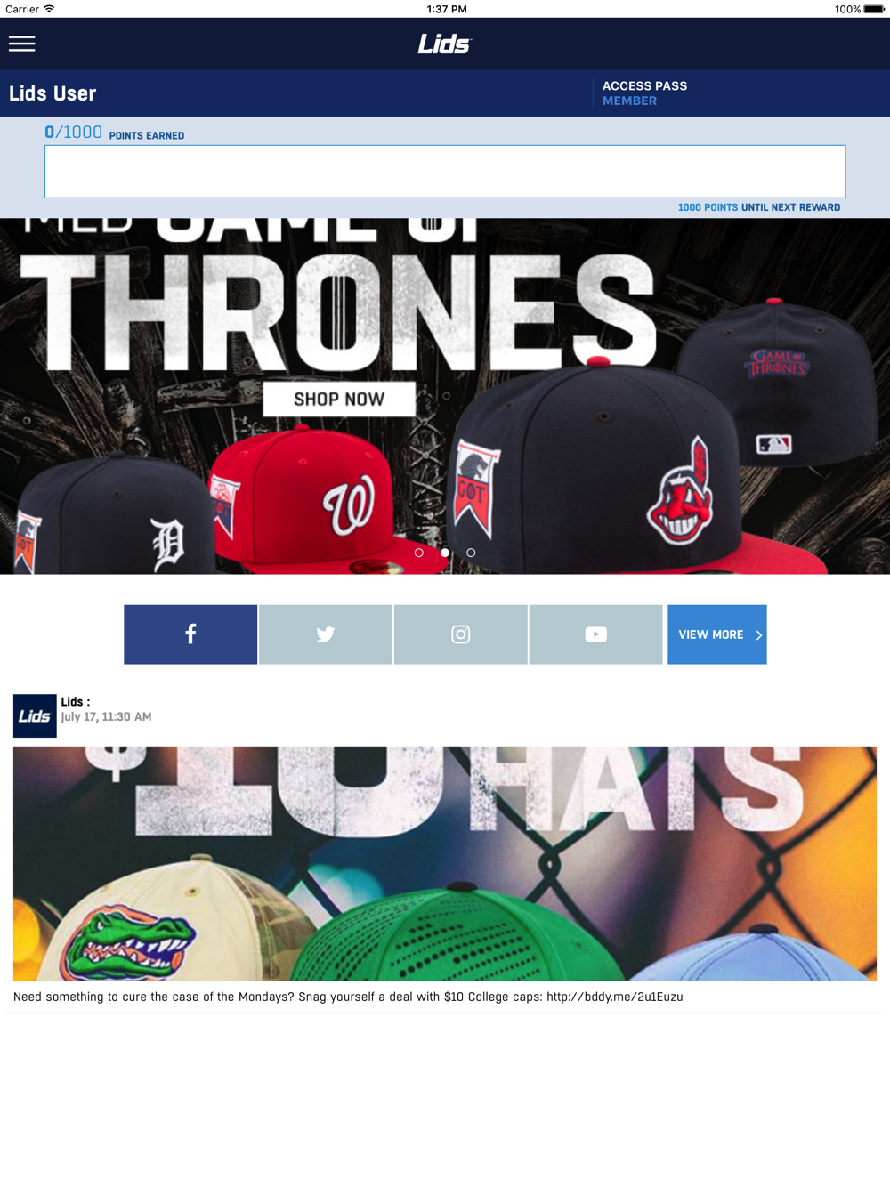 Download the app now and you can sign up for the red carpet treatment with Lids Access Pass.