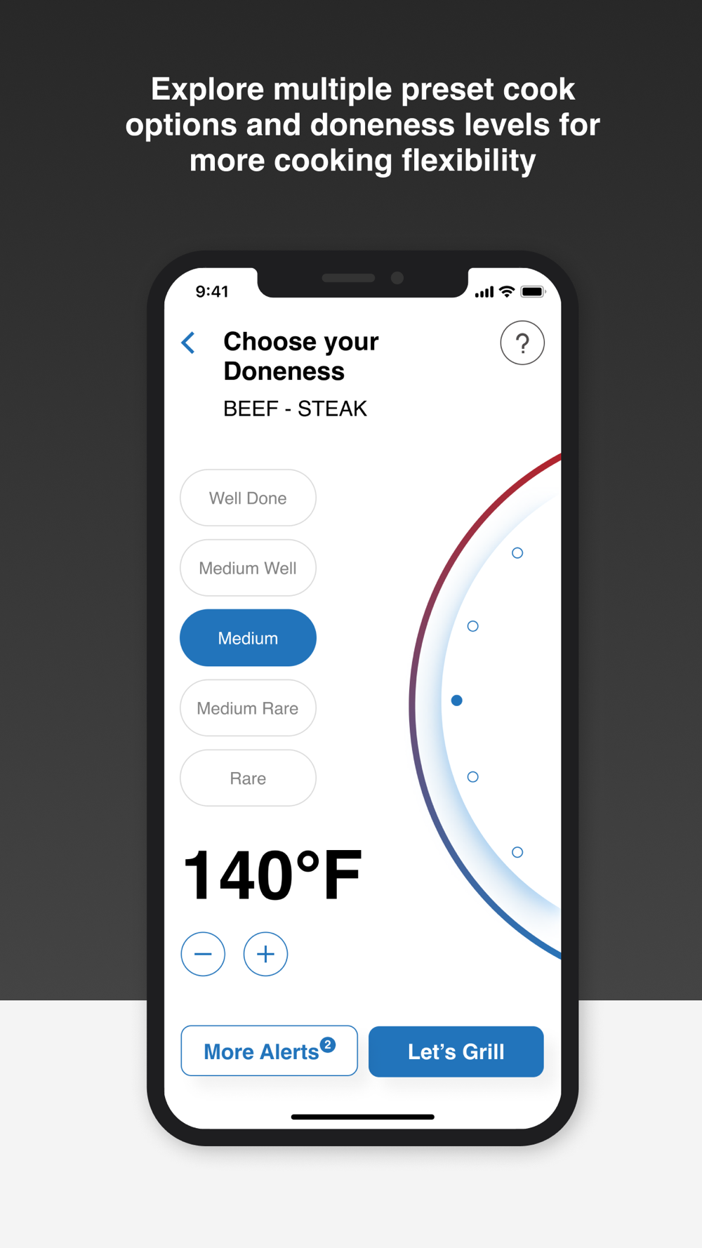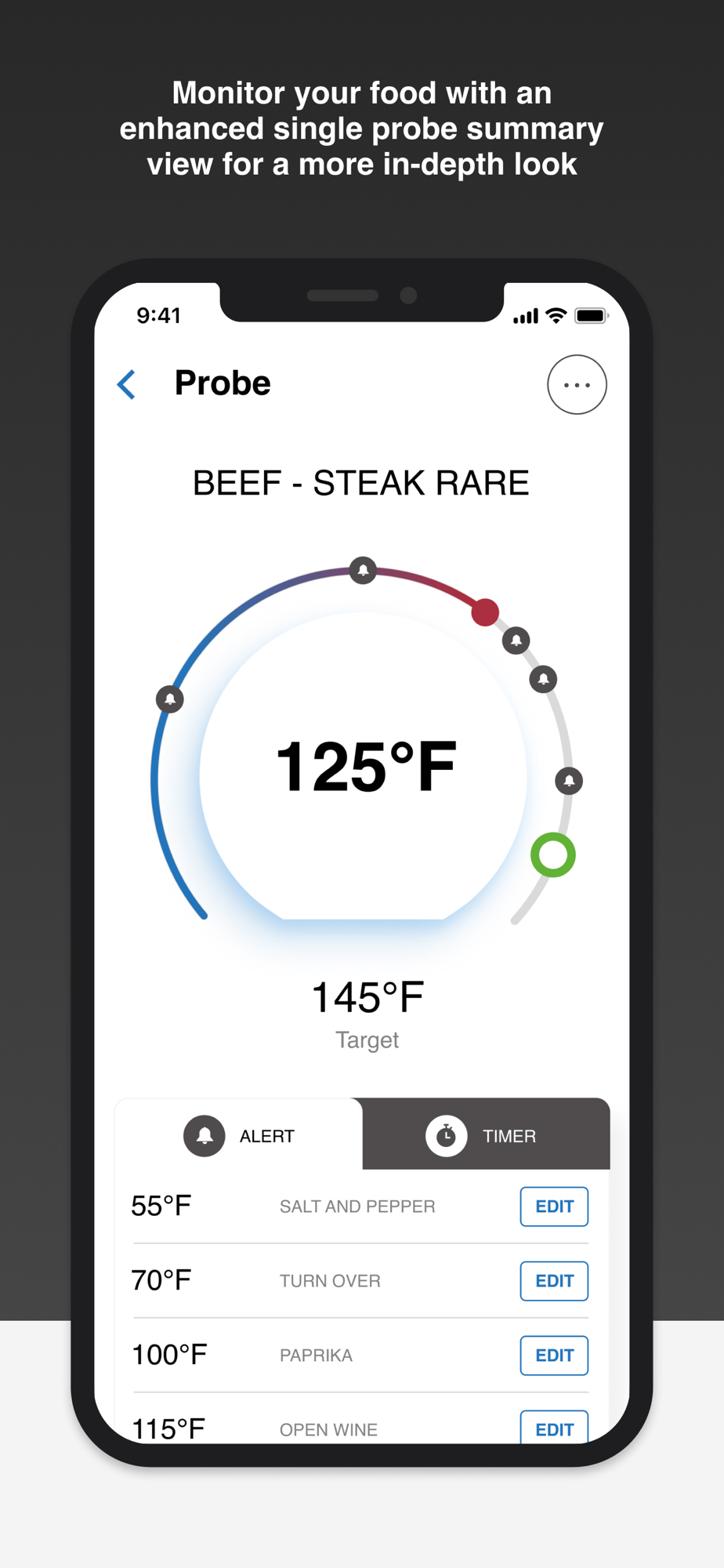 -The App allows users setup custom temperature alerts during the cooking cycle.