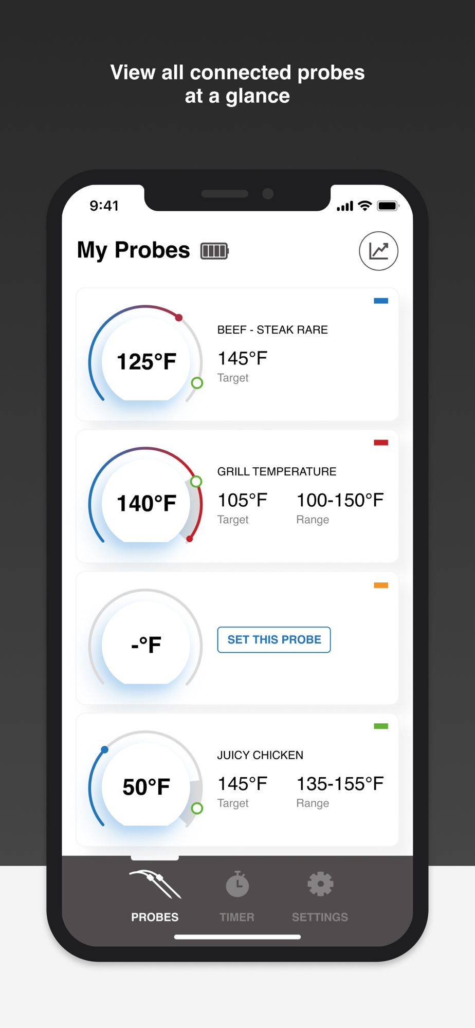 -Each timer can be selected to work as a standalone countdown timer or can be assigned to a probe that has been setup.