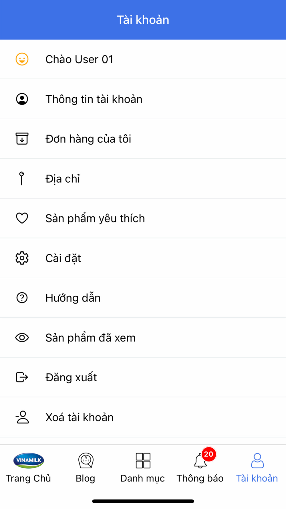 Ứng dụng mua sắm TMĐT chính thức và duy nhất của Công ty Cổ phần Sữa Việt Nam (Vinamilk).