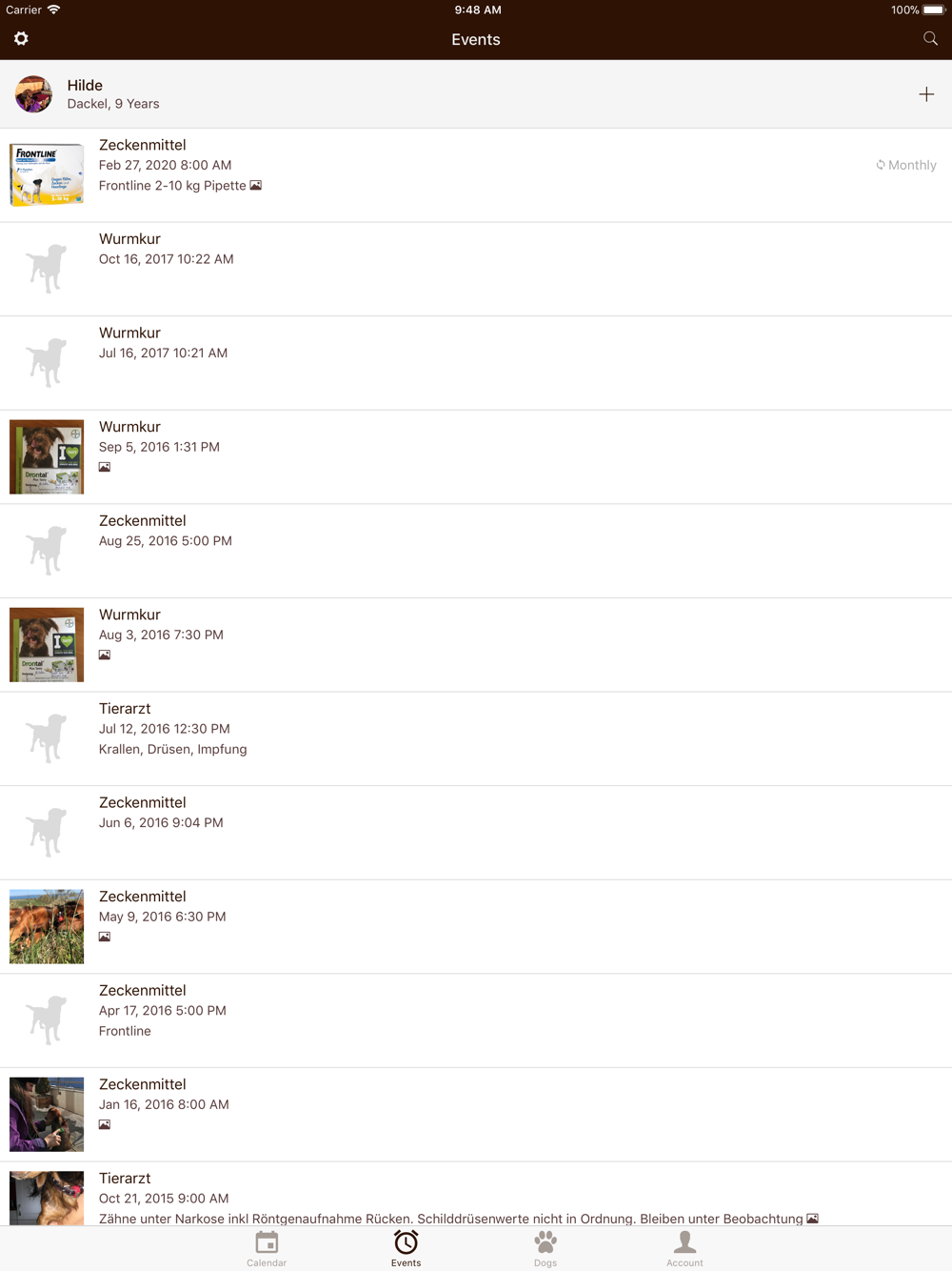 You can set recurring tasks such as worming, vaccinations or the application of an anti-tick agent and you will be easily remembered via push messages.