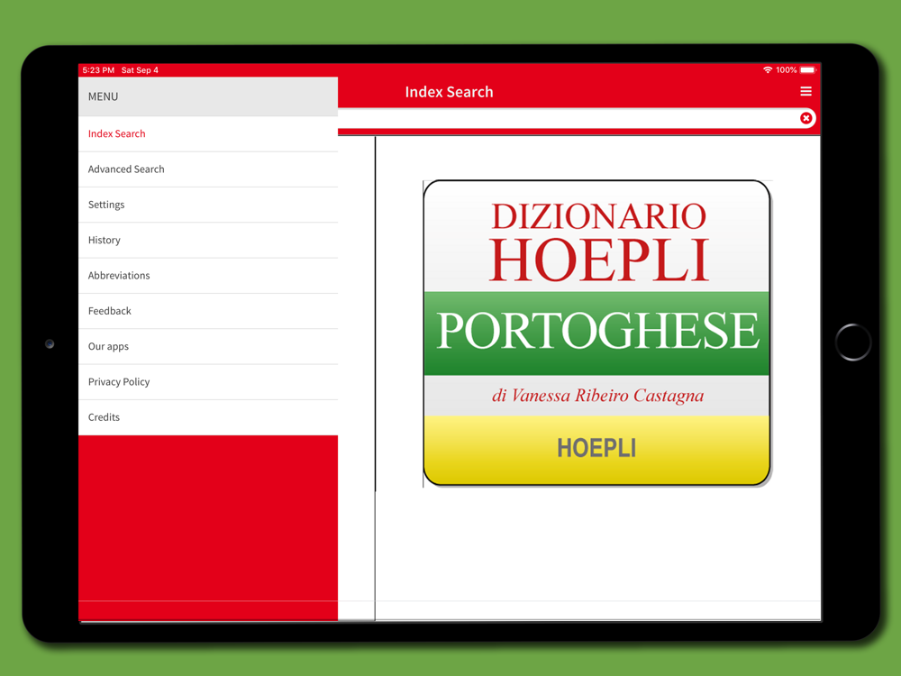 This app provides the Hoepli edition of the Portuguese-Italian/Italian-Portuguese Dictionary from Lorenzo Pompeo. With over 25,000 headwords graphically displayed in a clear and immediate way, the dictionary is characterized by a rich and updated content, making it a user-friendly and high-quality dictionary, a step higher than other dictionaries of the same category.