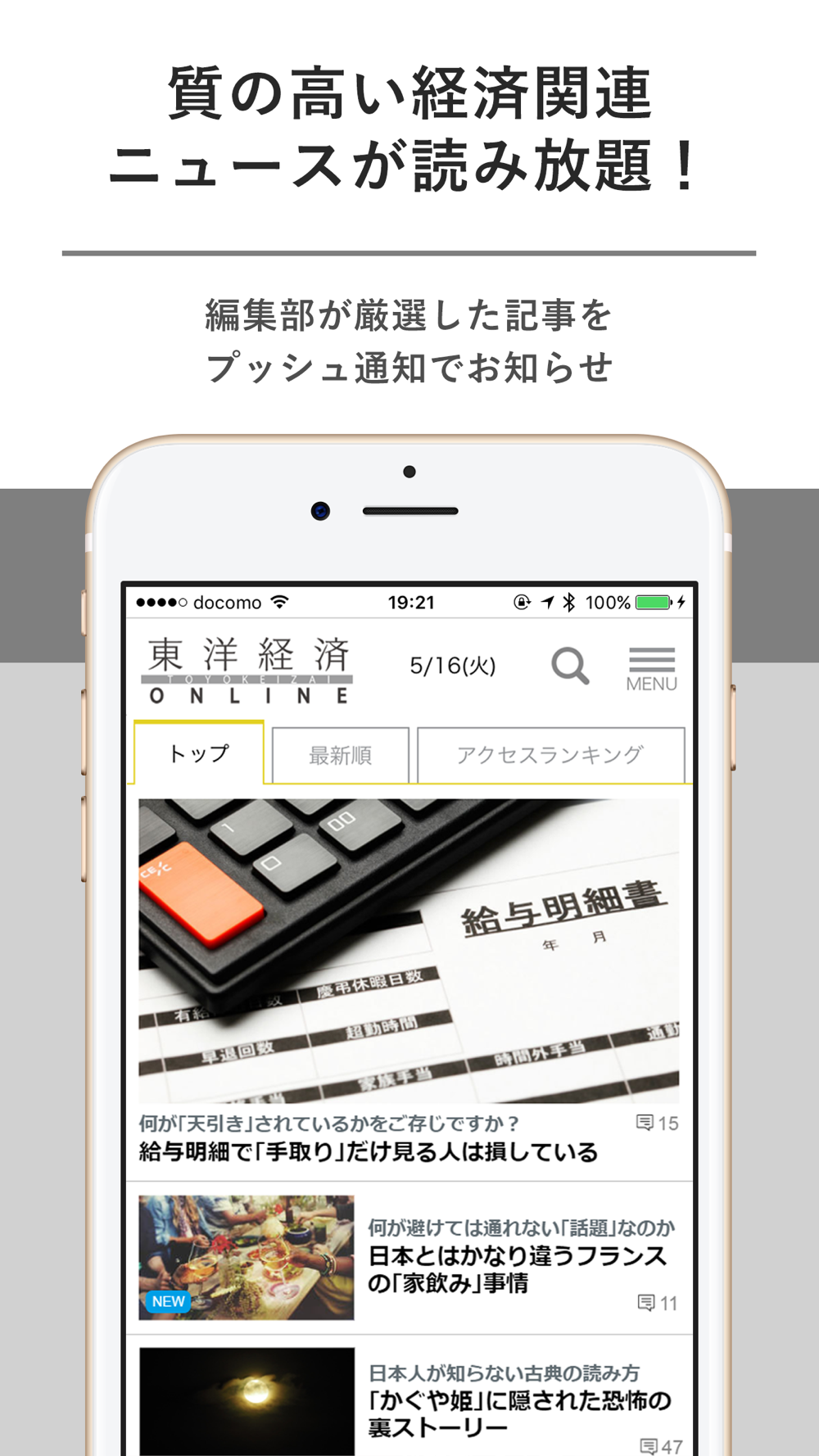 ・アプリを起動後、最初の画面にて「東洋経済オンライン」のコンテンツをご覧いただけます。(画面下部メニューバーの「Articles」も同様)