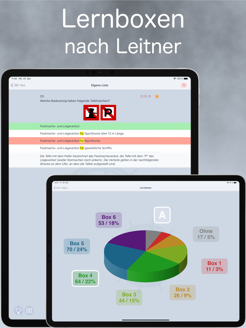 - Klassische Lernboxen nach dem Karteikartensystem Leitner (automatisch, manuell, Smartboxen)