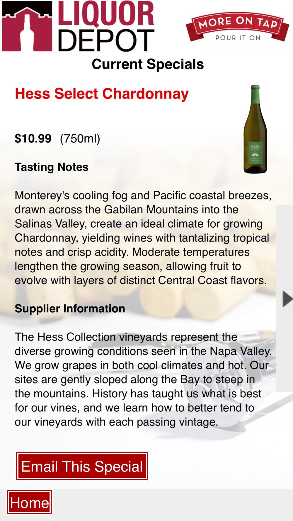 The official Liquor Depot, Inc. Mobile App. Browse our products, drink recipes, food and wine pairing suggestions, staff recommendations, current specials, upcoming events and more!