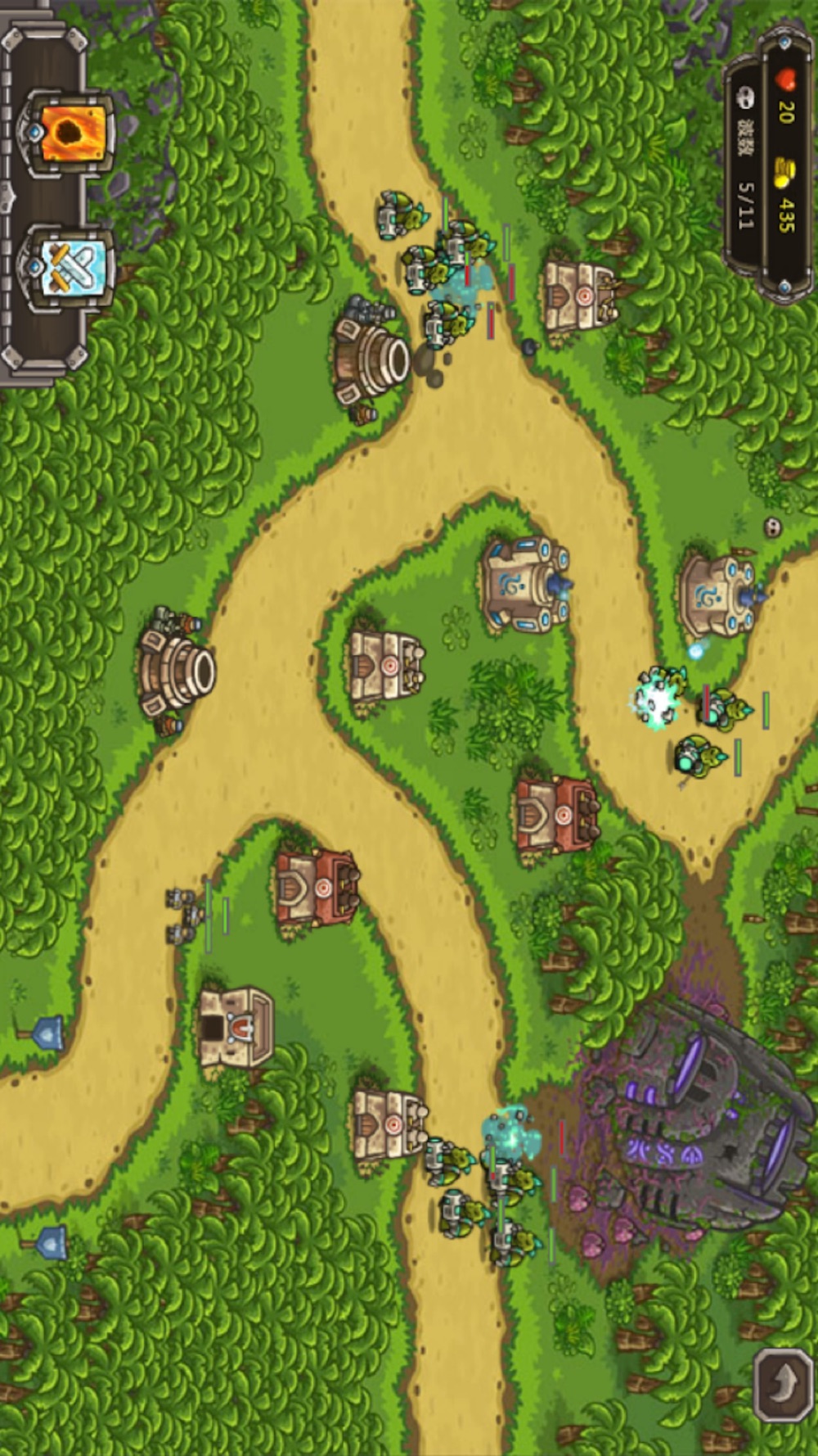 四种基本塔防建筑(箭塔、炮塔,魔法塔和兵营),20余种升级塔防,附加8种特殊塔。