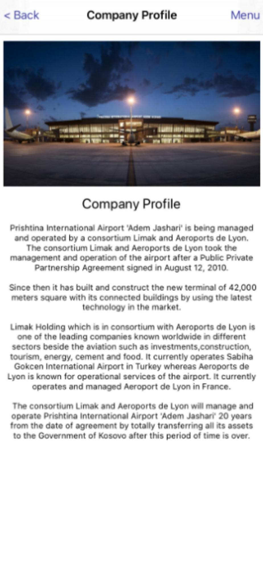 Flight Information, Airport Services, Airport Information, Destinations and Flight Schedules, News and other info.