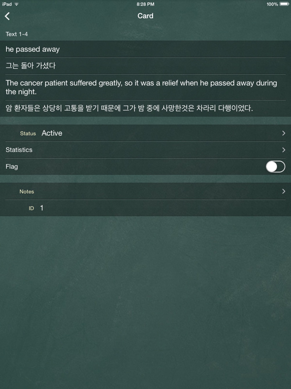 Audio for all the contents is included as well. Also included is a custom quiz function which you can use and send your results to your teacher with via email. This app also automatically sends all items you miss often to a special “difficult cards” folder to make it easy for you to concentrate on them. What’s more is it features one of the most advanced Leitner algorithms on the market to help you learn more efficiently: you mark items you don’t know wrong and they come back more often, giving you the necessary exposure to master them. Items you mark correct don’t come back as often, so you don’t have to waste your time with items you already know. This method has been shown to be the most ideal way to learn in linguistics research.