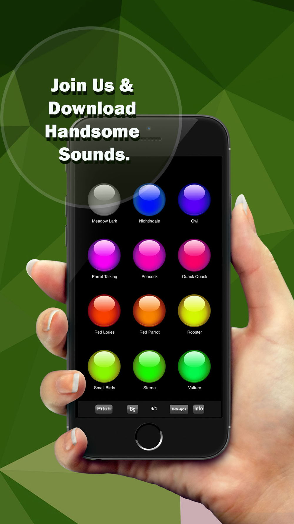 Listen HD sounds of birds like duck’s quack, eagle’s scream, hen’s cluck, owl’s hoot, parrot’s talk, pigeon’s coo, robin’s chirp, sparrow’s yelp, swallow’s twitter and many more voices at one spot with this leading gorgeous soundboard app.