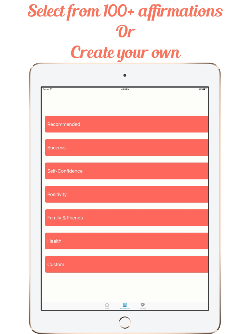 2. Select a category to see a list of affirmations or select Custom to create your own affirmations