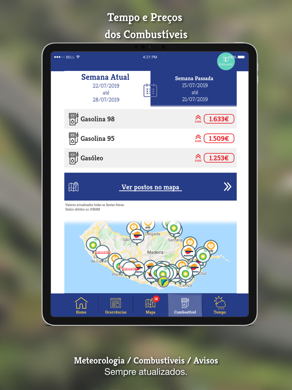 Preço dos combustíveis atualizados todas as sextas-feiras.
