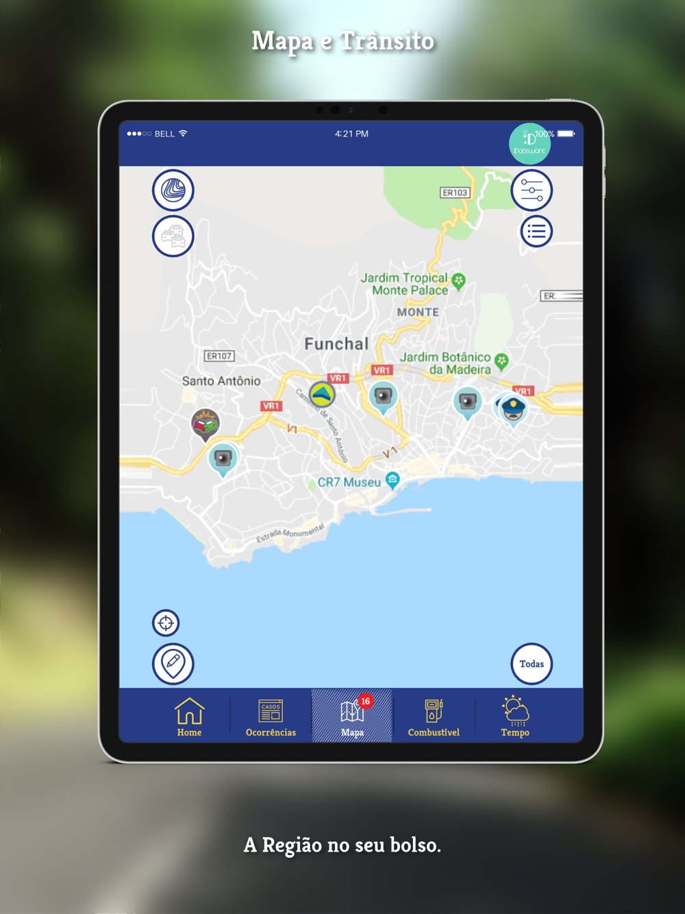 O Ocorrências Madeira v2 permite aos utilizadores receberem novidades acerca da ilha da Madeira.