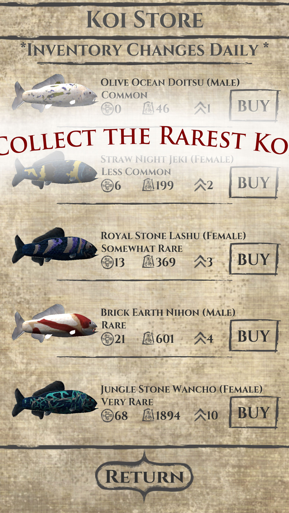 Create your own zen experience by breeding new, rare koi and decorating your pond to make it beautiful.