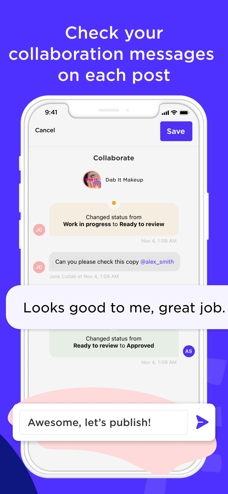 - Collaborate with your team, review or approve content, anytime, anywhere