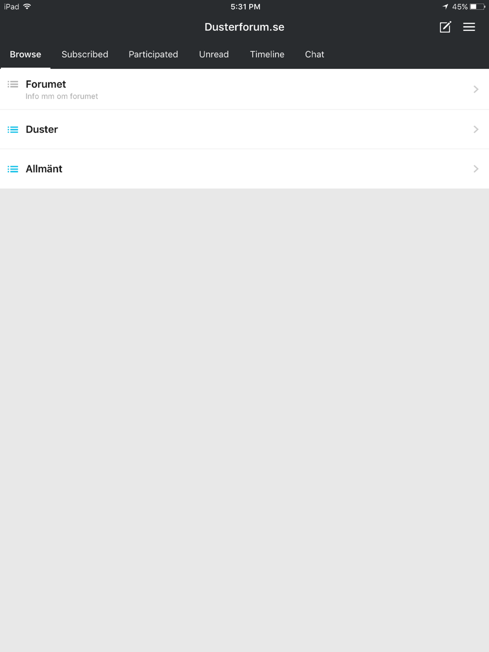 Dusterägare eller blivande sådan? Då har vi rätt forum för dig! Frågor, idéer, montering, ombyggnader, styling, diverse uppgraderingar, träffar mm. Vi gör allt från att hjälpa till att lösa eventuella problem till att visa upp våra egna projekt med våra Dusters i form av projekttrådar samt genom att bara fritt dela bilder/filmer från olika äventyr med våra Dusters.